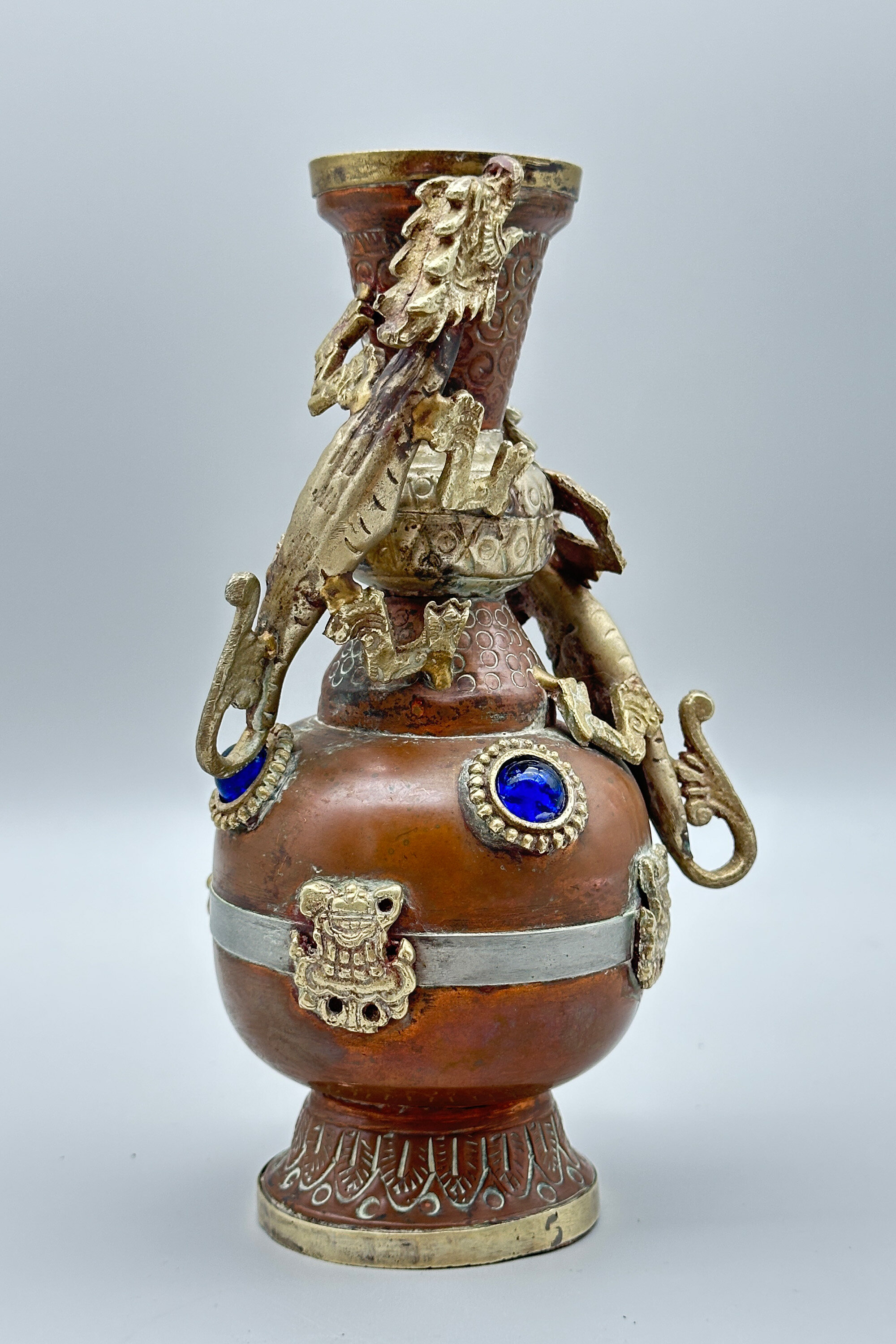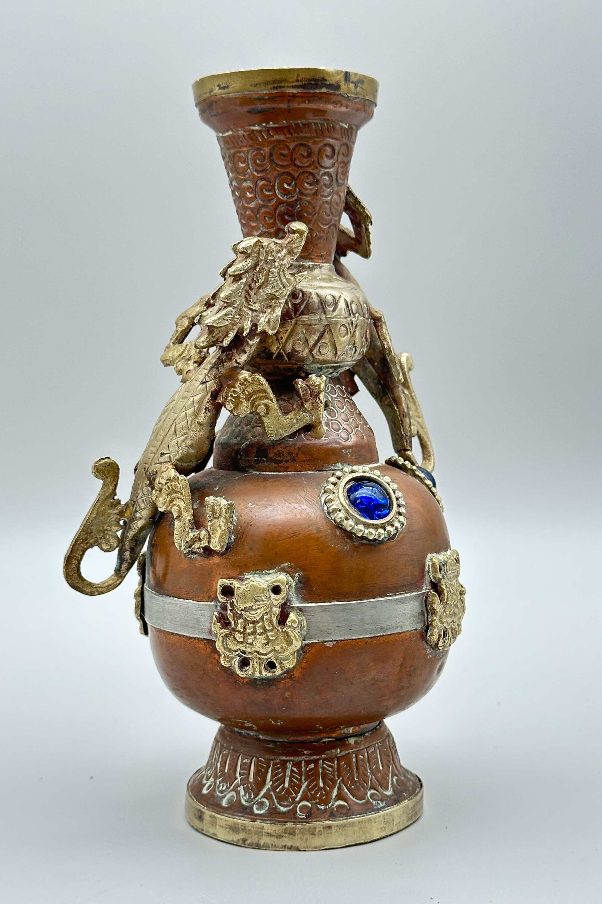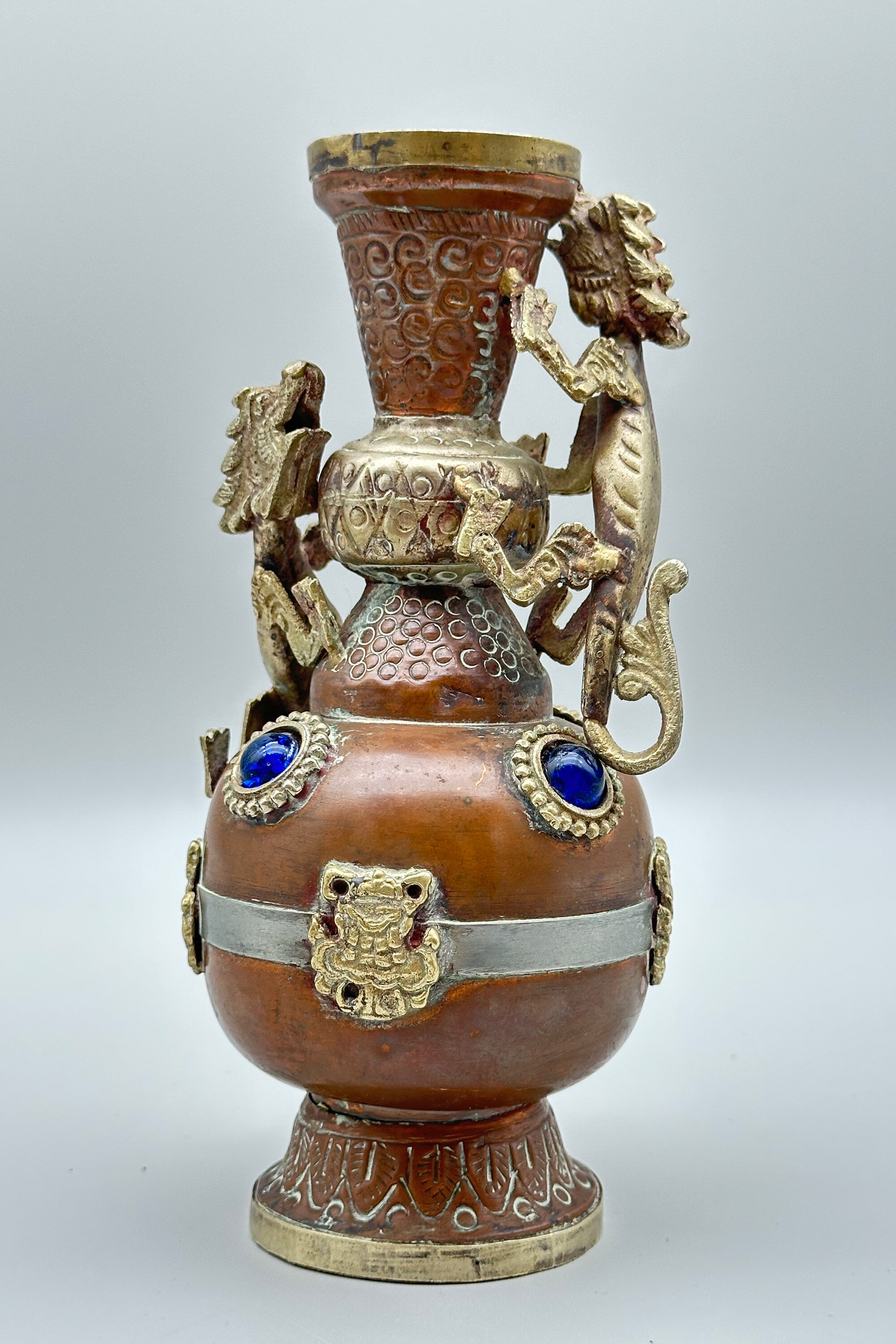 Asian copper vase with applied brass dragons, probably Nepal or Tibet, early C20th