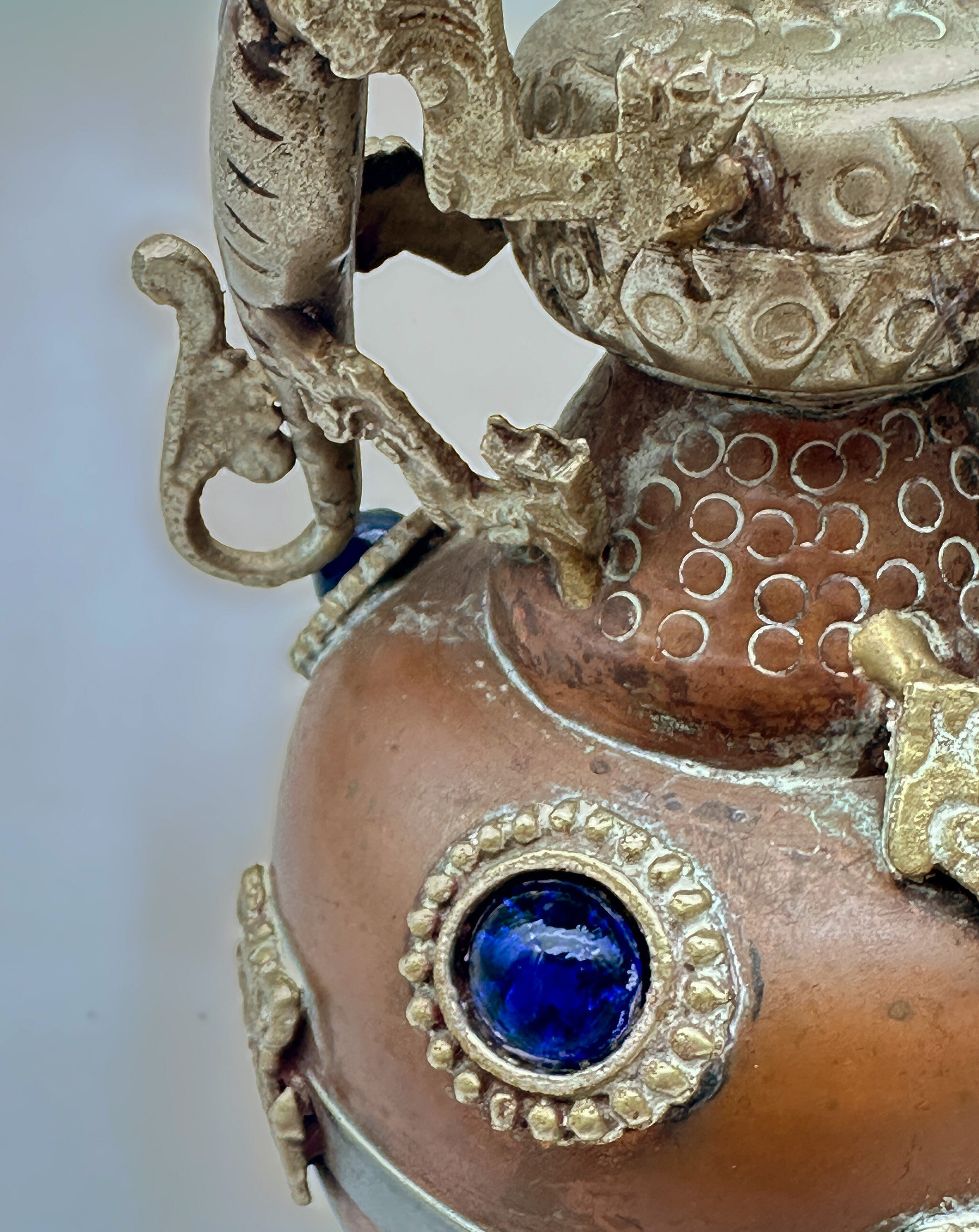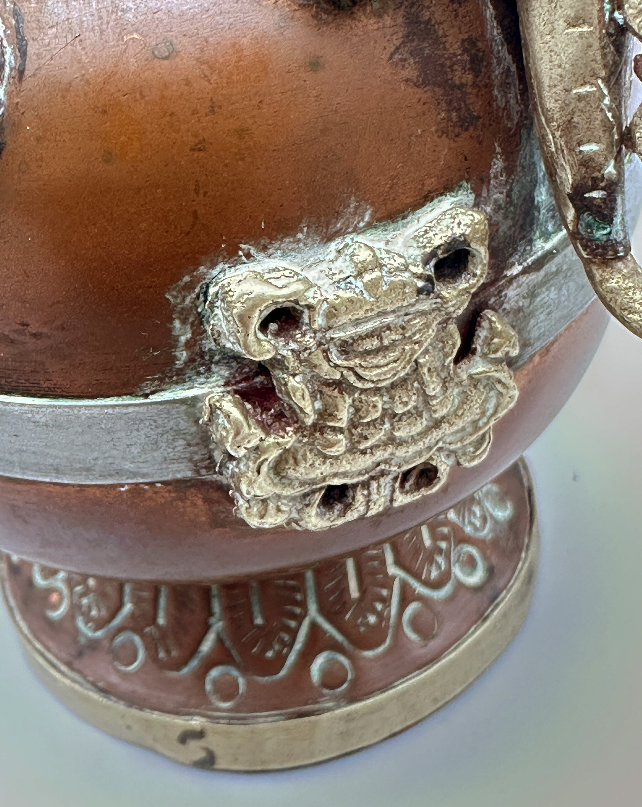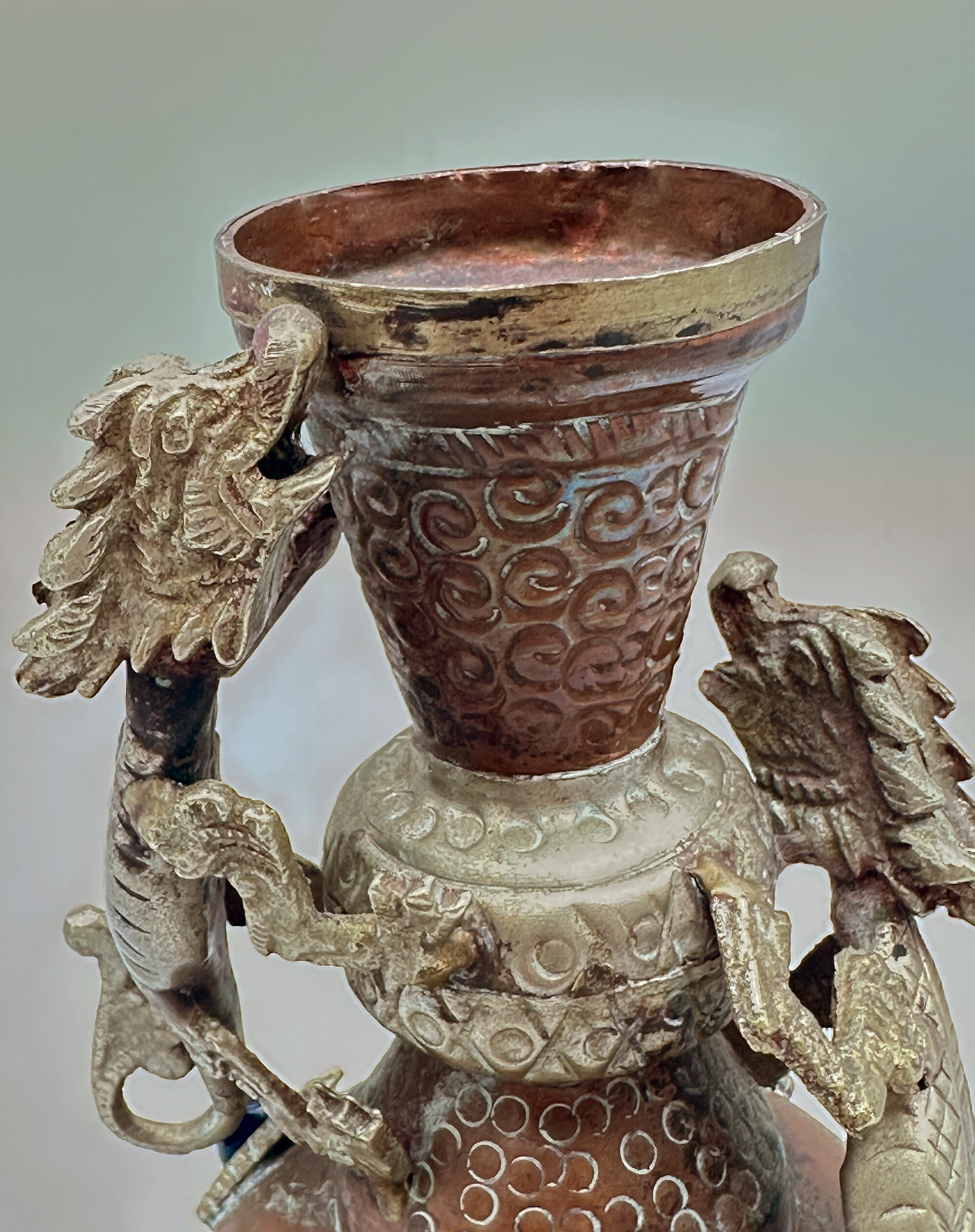 Asian copper vase with applied brass dragons, probably Nepal or Tibet, early C20th