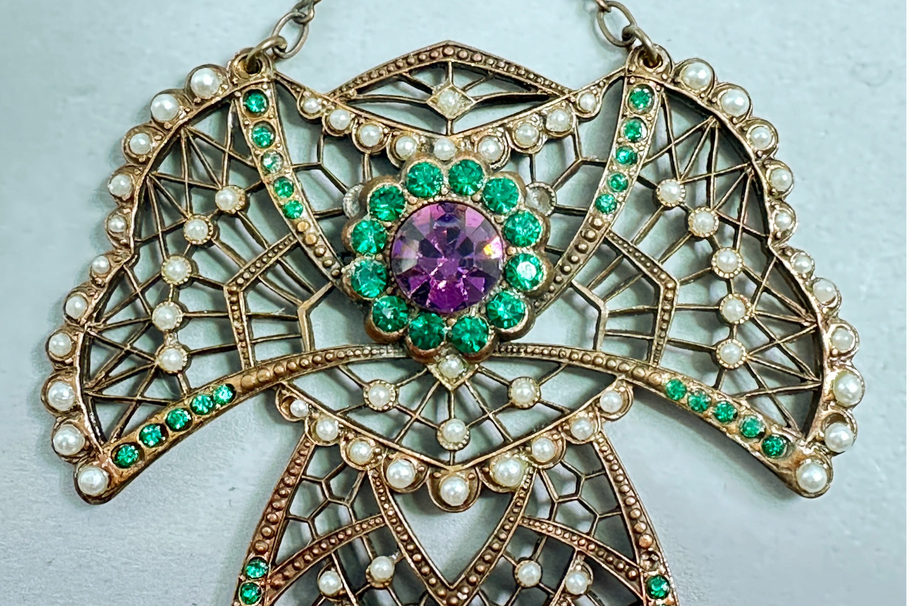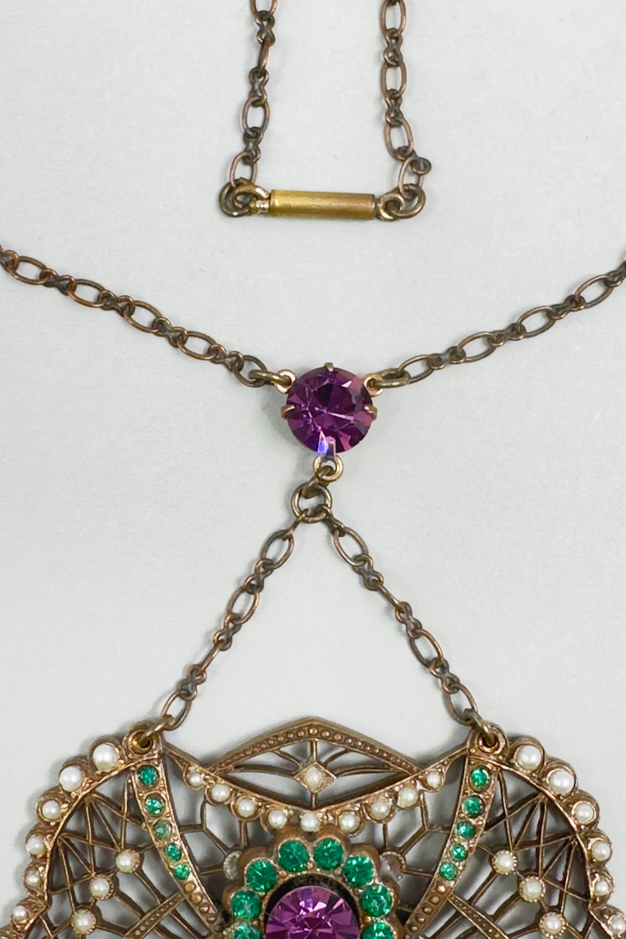 Art Deco statement necklace with real pearls and paste stones c1920