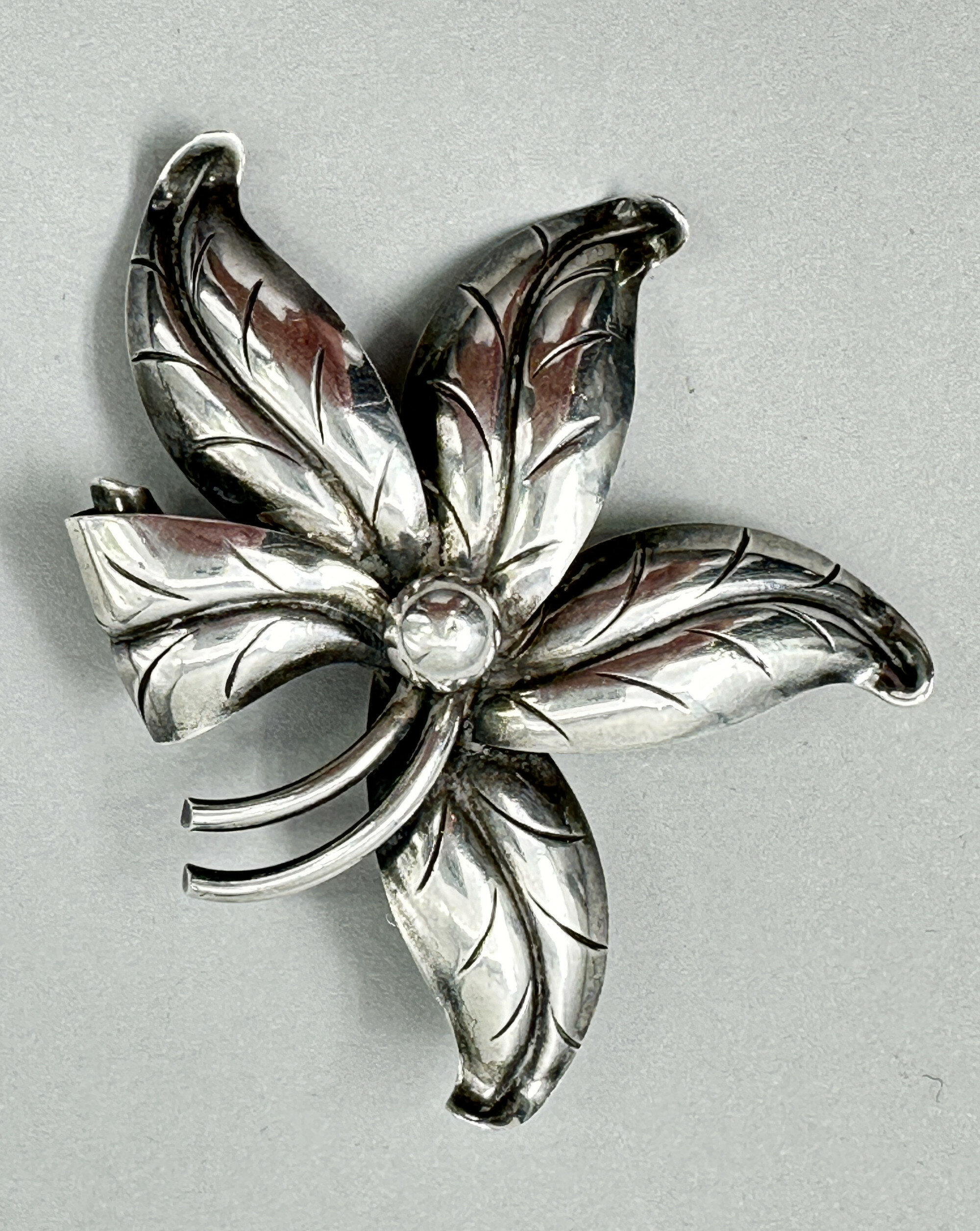 Danish silver floral brooch, Max Standager c1960
