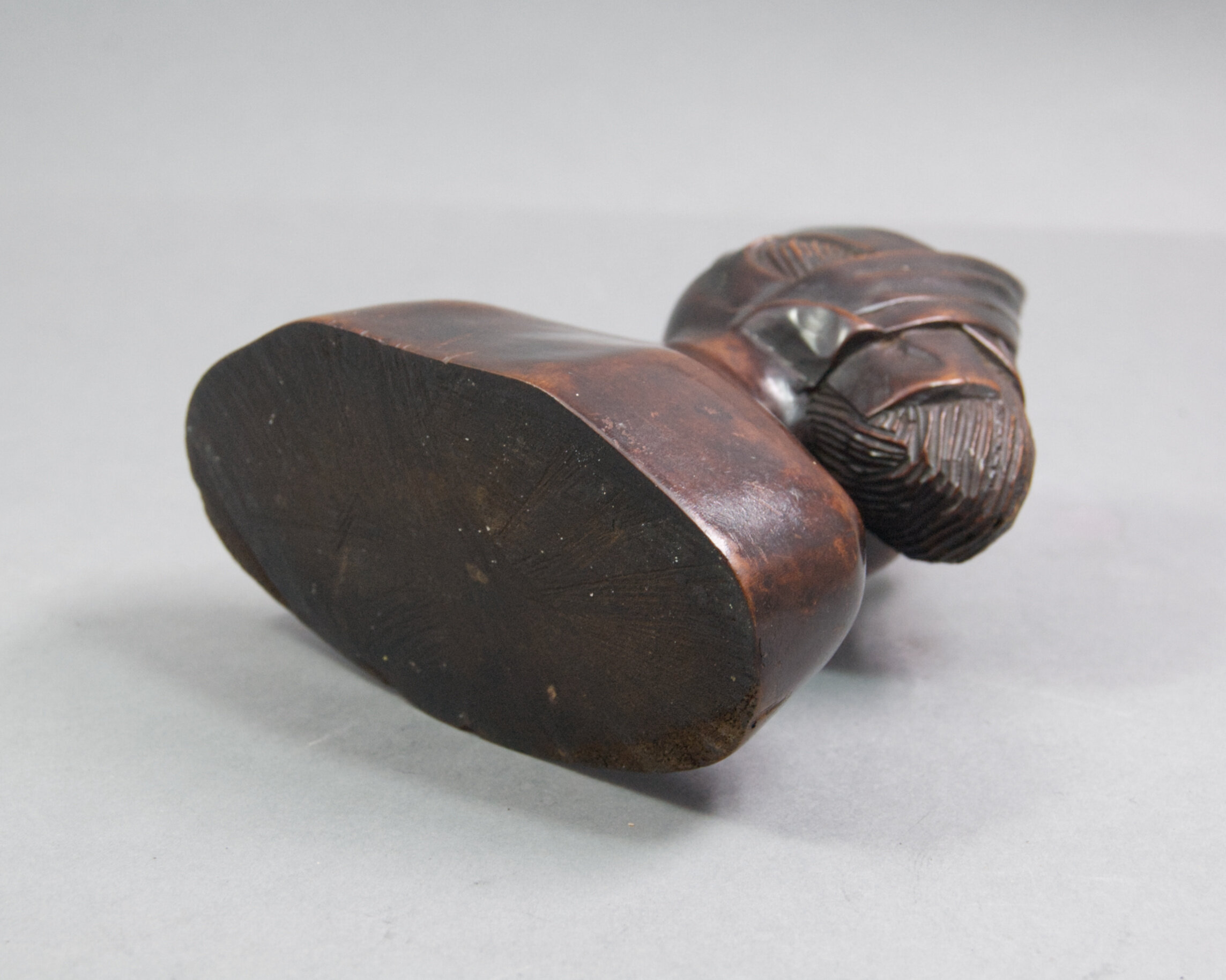Balinese hardwood Portrait Bust depicting the head a young man wearing traditional headdress. Figures of this type were made in Indonesia on the island of Bali and are sometimes found in pairs of a man and a lady, giving rise to the suggestion that they were wedding sculptures. Dating is usually ascribed to the early 1900s and this piece would then reflect the interest in ethnic art which was quite widespread at that time.| Size: | 15.5cm x 13 cm |