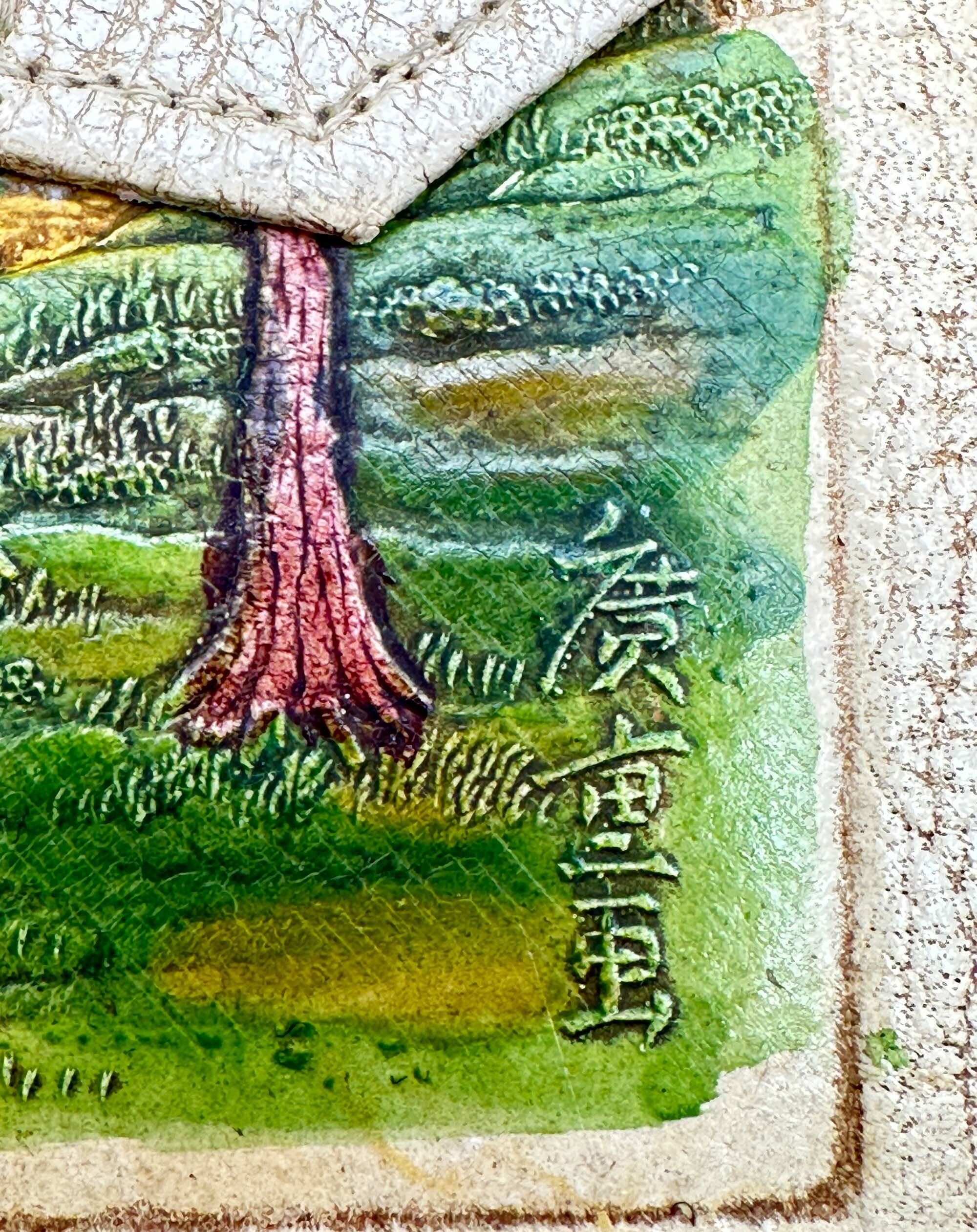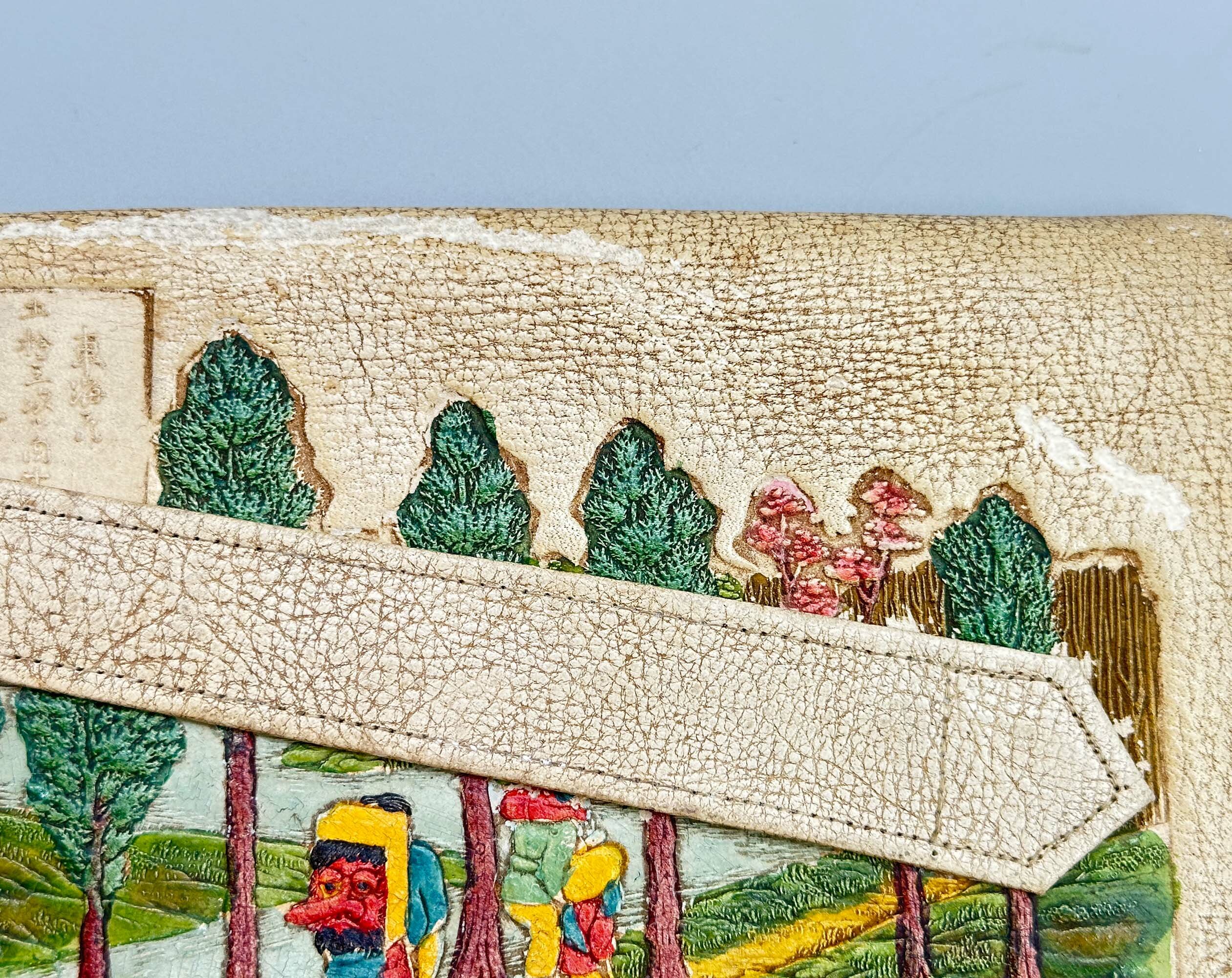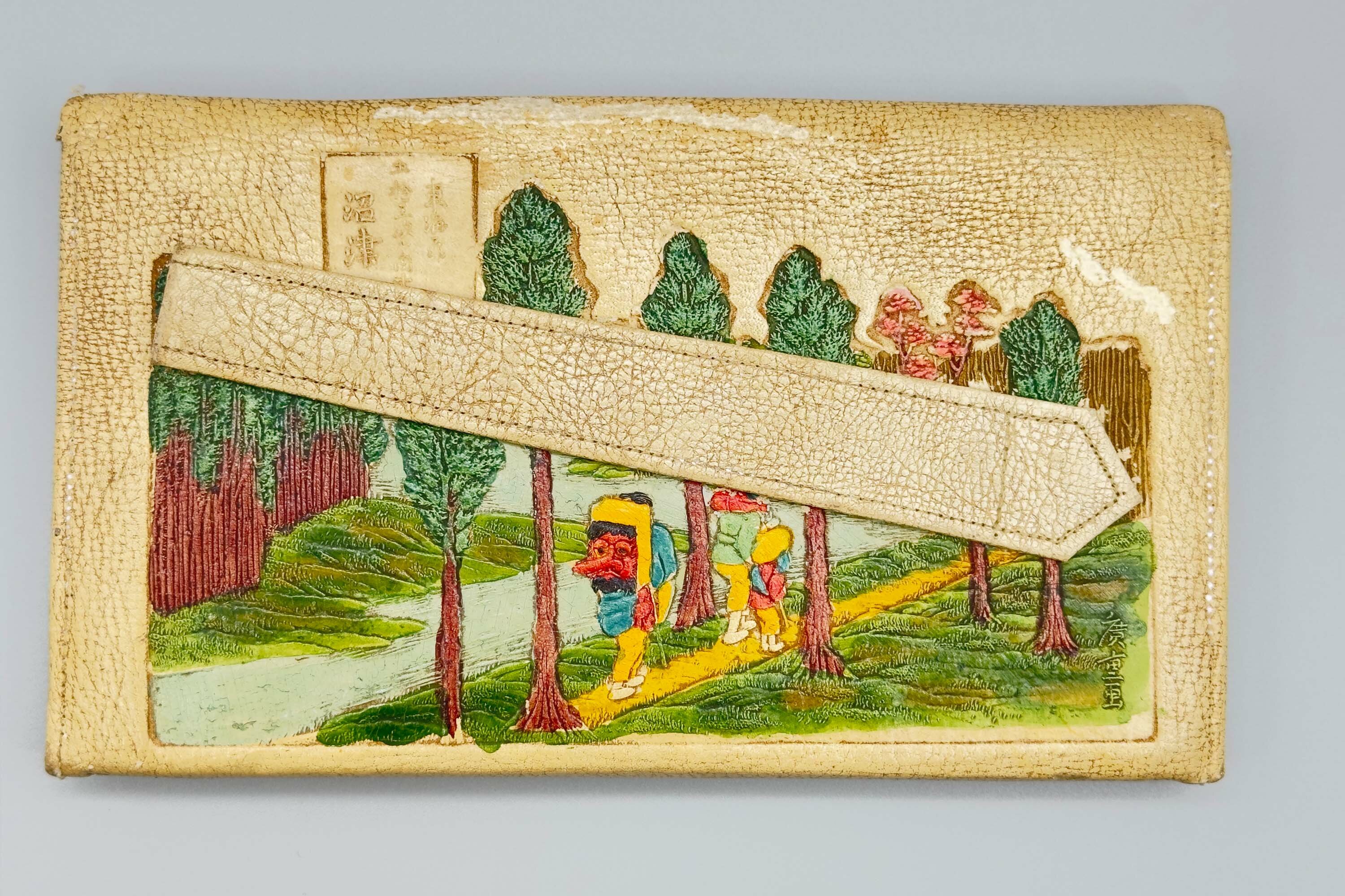Japanese tooled and painted Leather Clutch Bag, 1930s