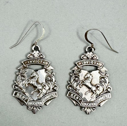 Pair of silver fobs adapted as earrings, Bir...