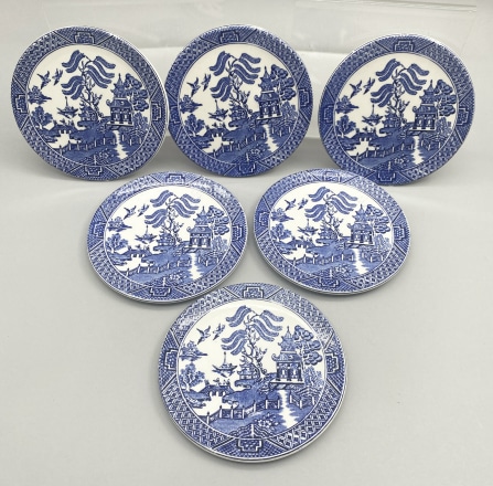 A Set of Six Blue and White Willow Pattern C...
