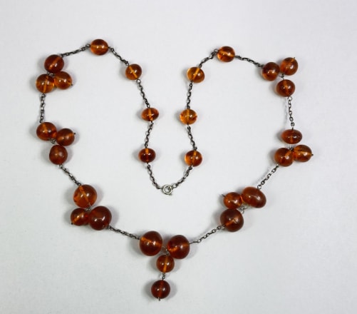 Amber statement necklace with round drops c1960