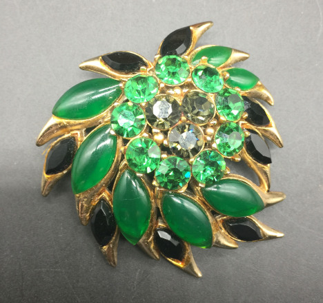 Striking brooch with faux jade stones by Sphinx