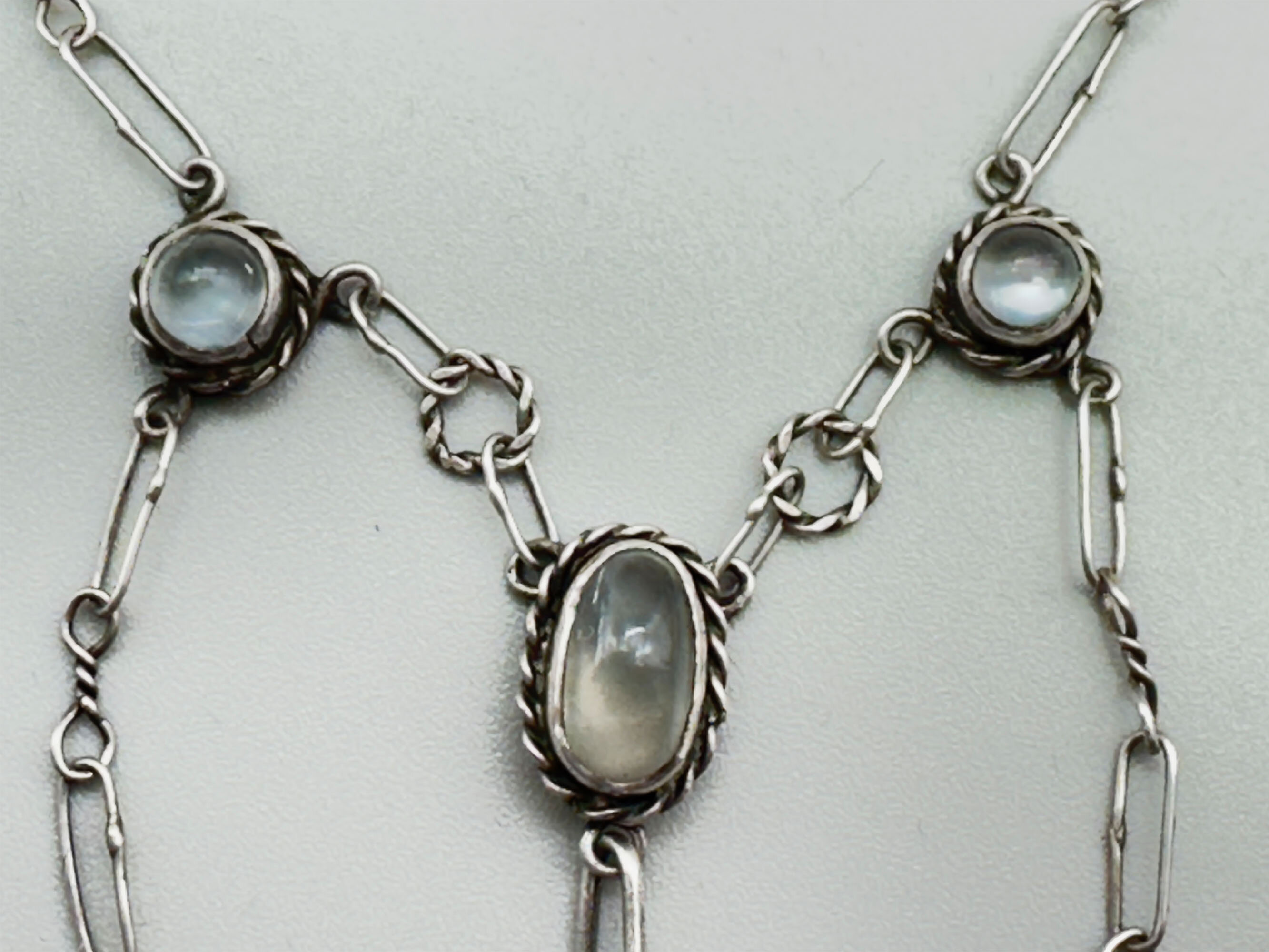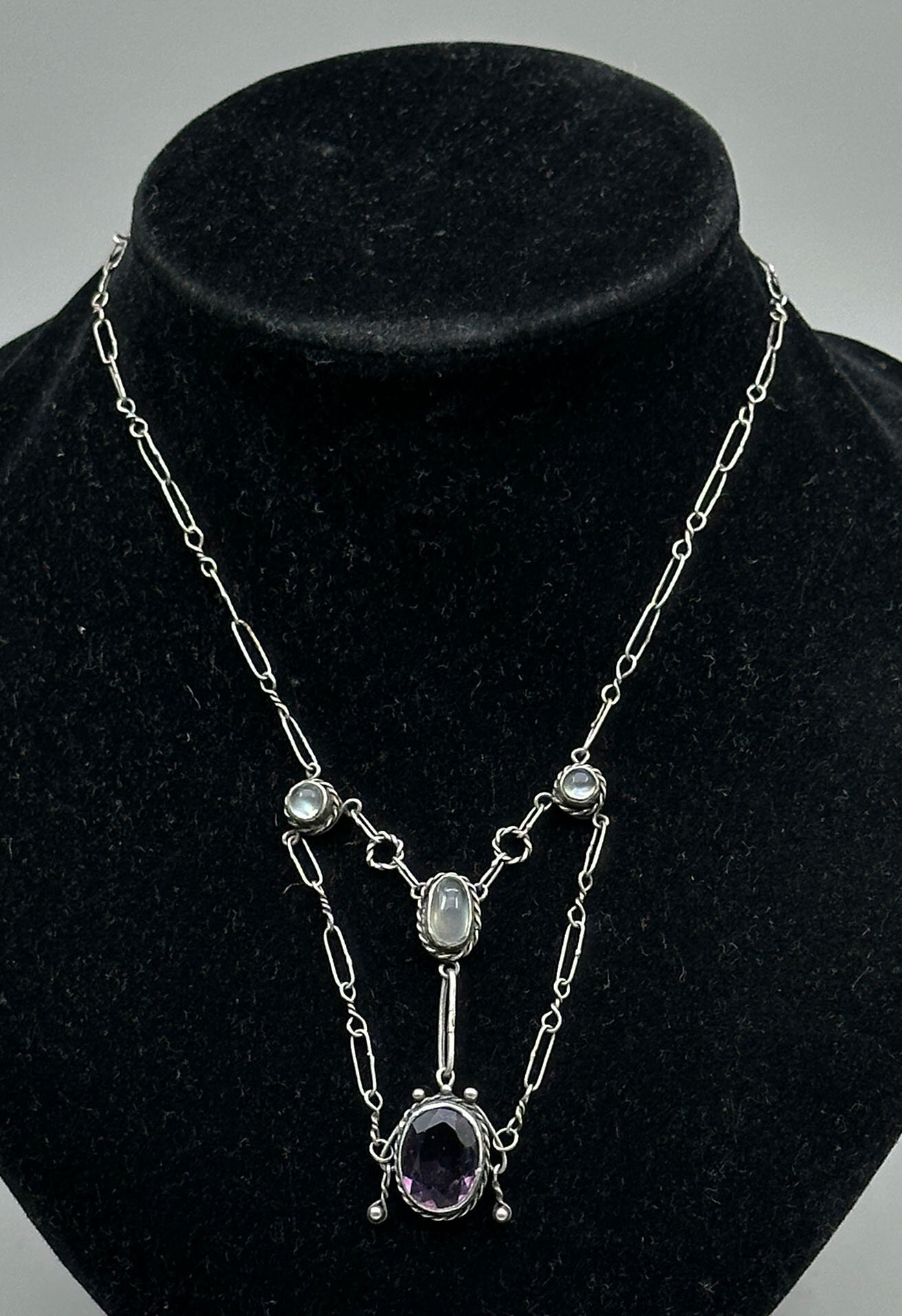 Arts and Crafts necklace with moonstones and amethyst c1910