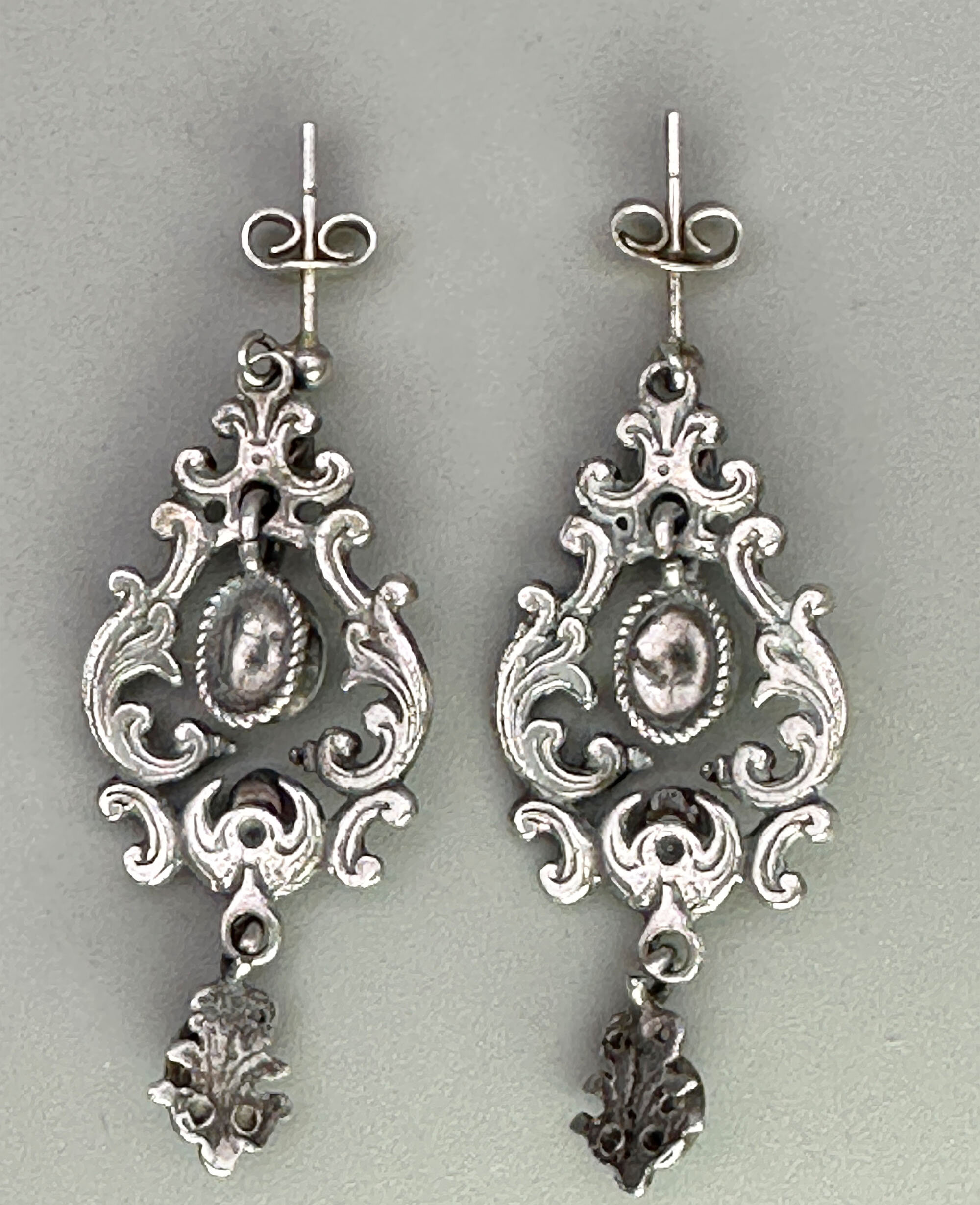These are incredible earrings with a cartouche design, they are set with the most vivid and beautiful opal stones. There are four opals in earch earring. These are a rare find for sure.| Size: | Length 43.3 mm Width 17.4 mm |