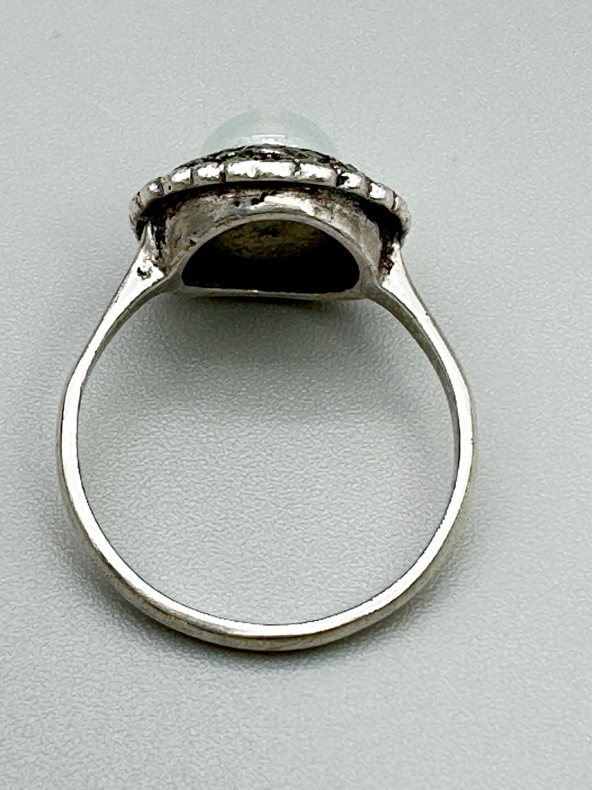 White calcedony and marcasite ring, Birmingham 1951