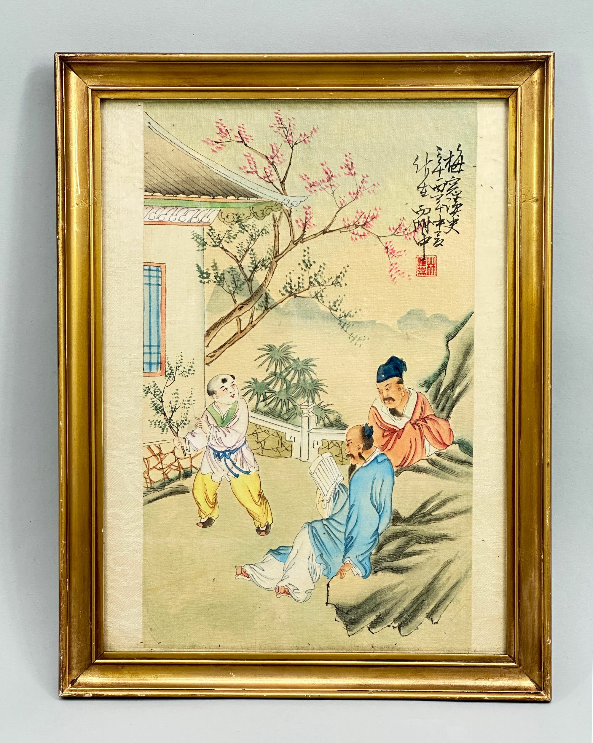 Chinese Watercolour Painting on Silk, framed, first half C20th