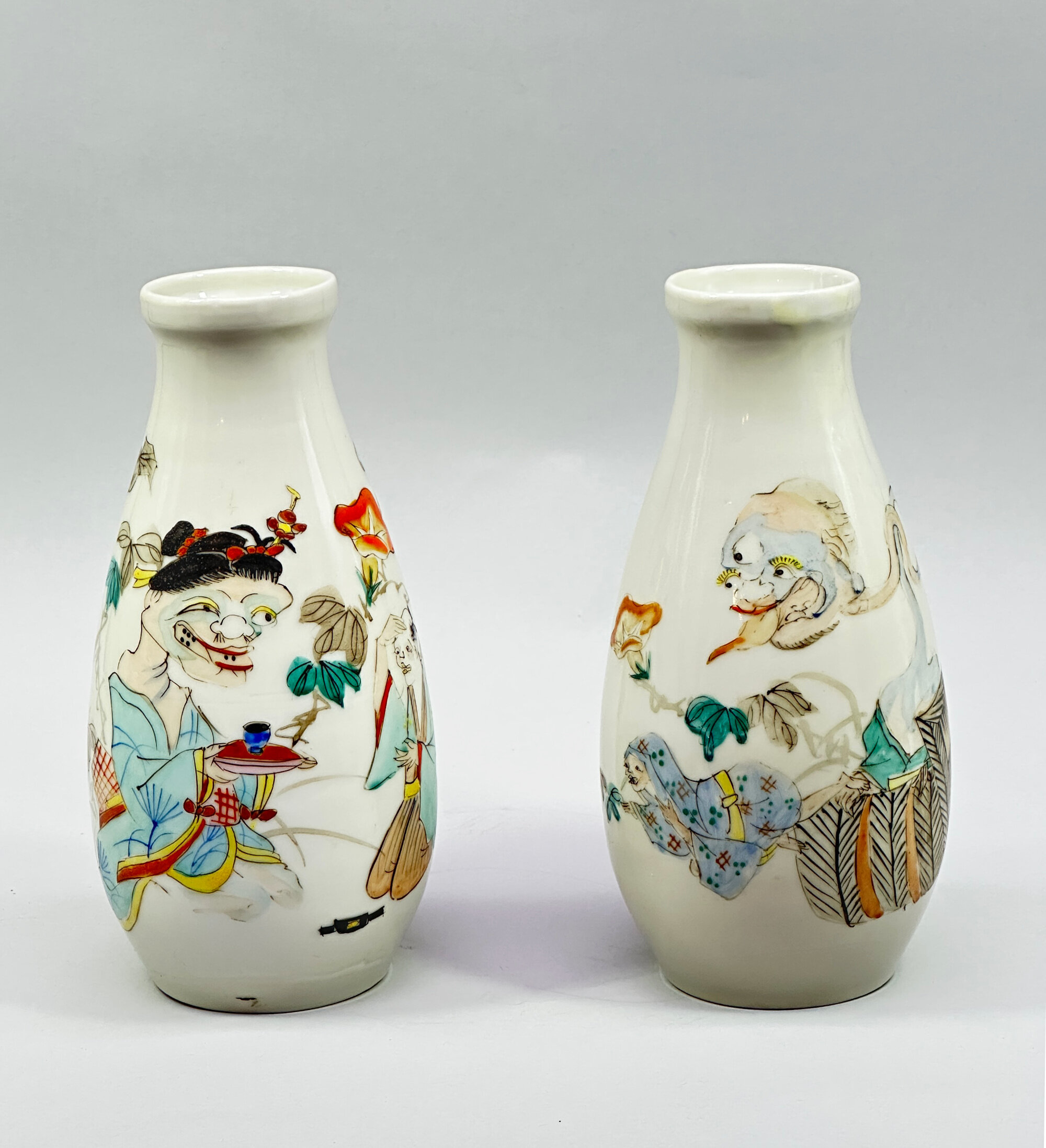 Pair of Japanese Arita Vases decorated with Oni, late C19th