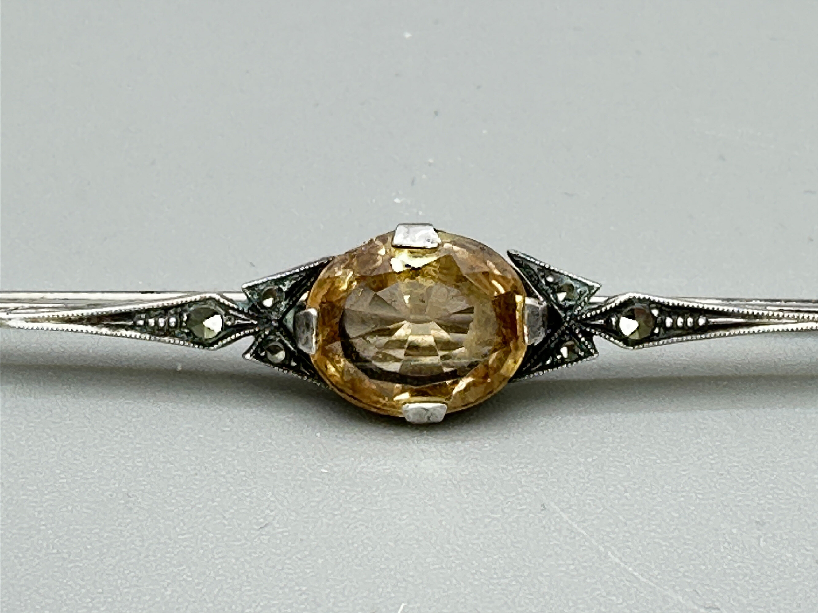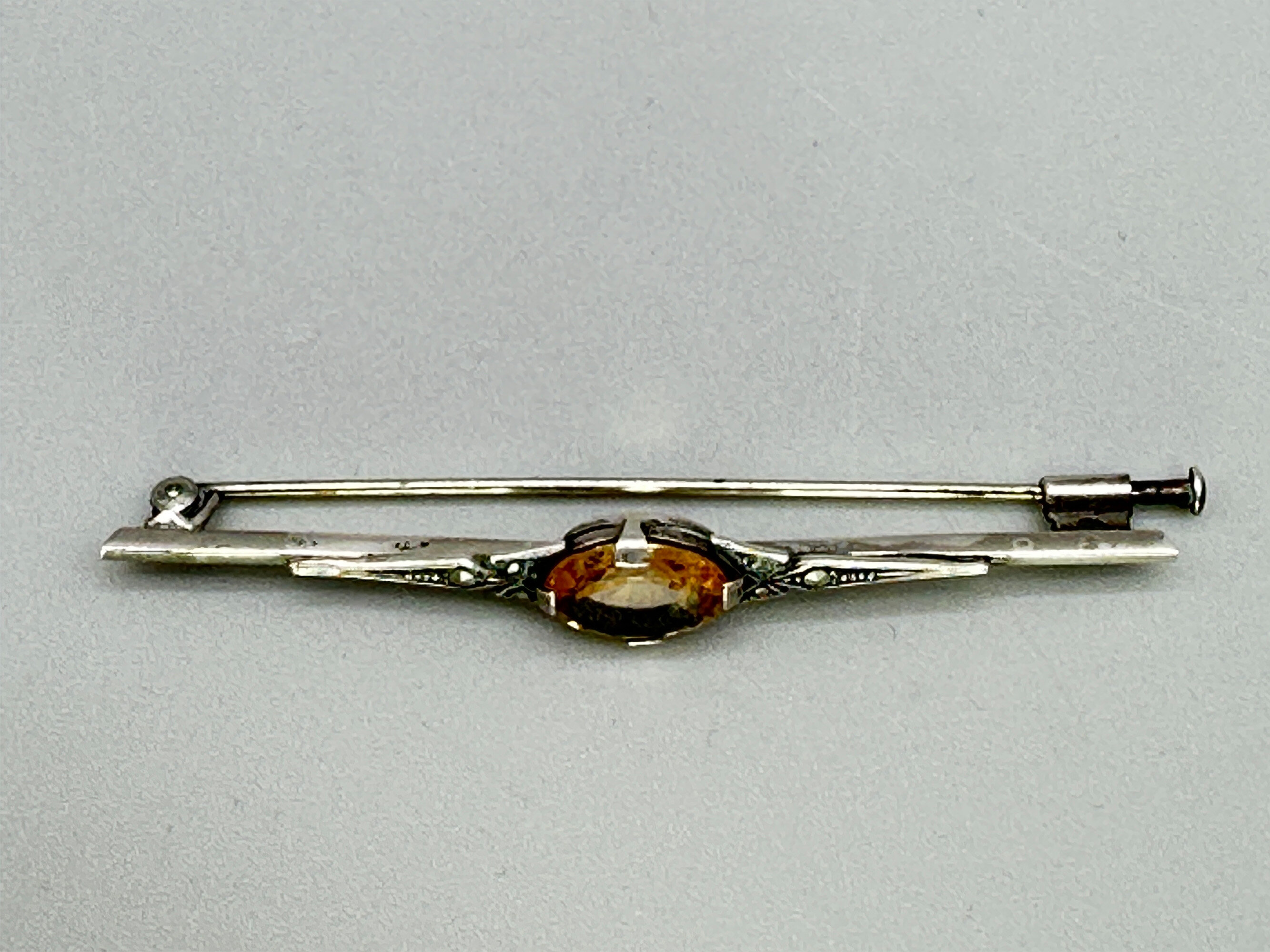 Art Deco bar brooch with cirtrine in fitted box, c1920