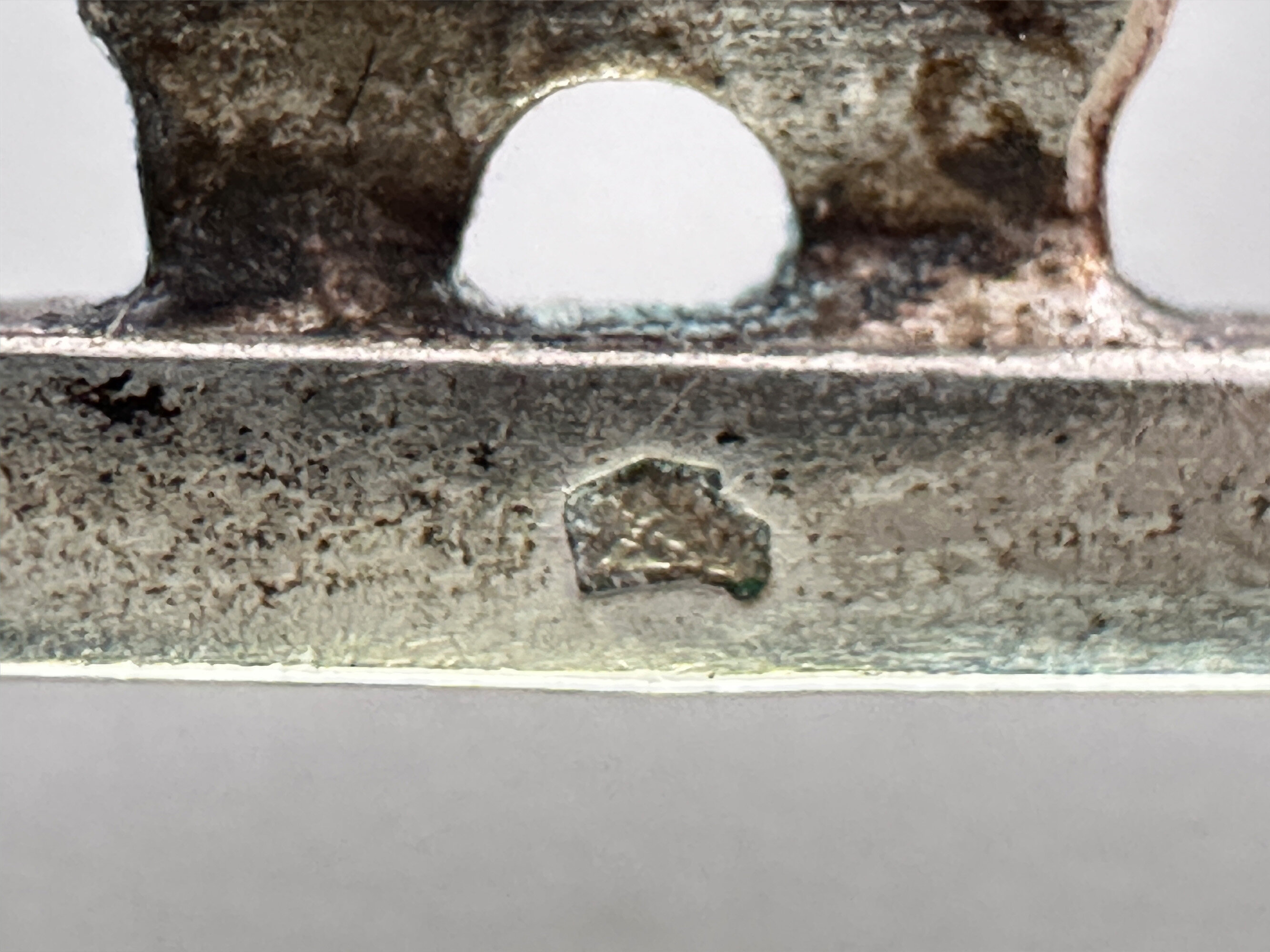 This is a very elegant bar brooch in silver set with a large citrine stone. It bears and indistinct mark but is most likely French. The box that is included this lot says "Richard Ogden Ltd, Burlington Arcade W1". I appears that this is the original box although we cannot guarantee this. These old boxes are difficult to come by these days but they do float around quite a bit. :)| Size: | 71.2 x 10 mm |