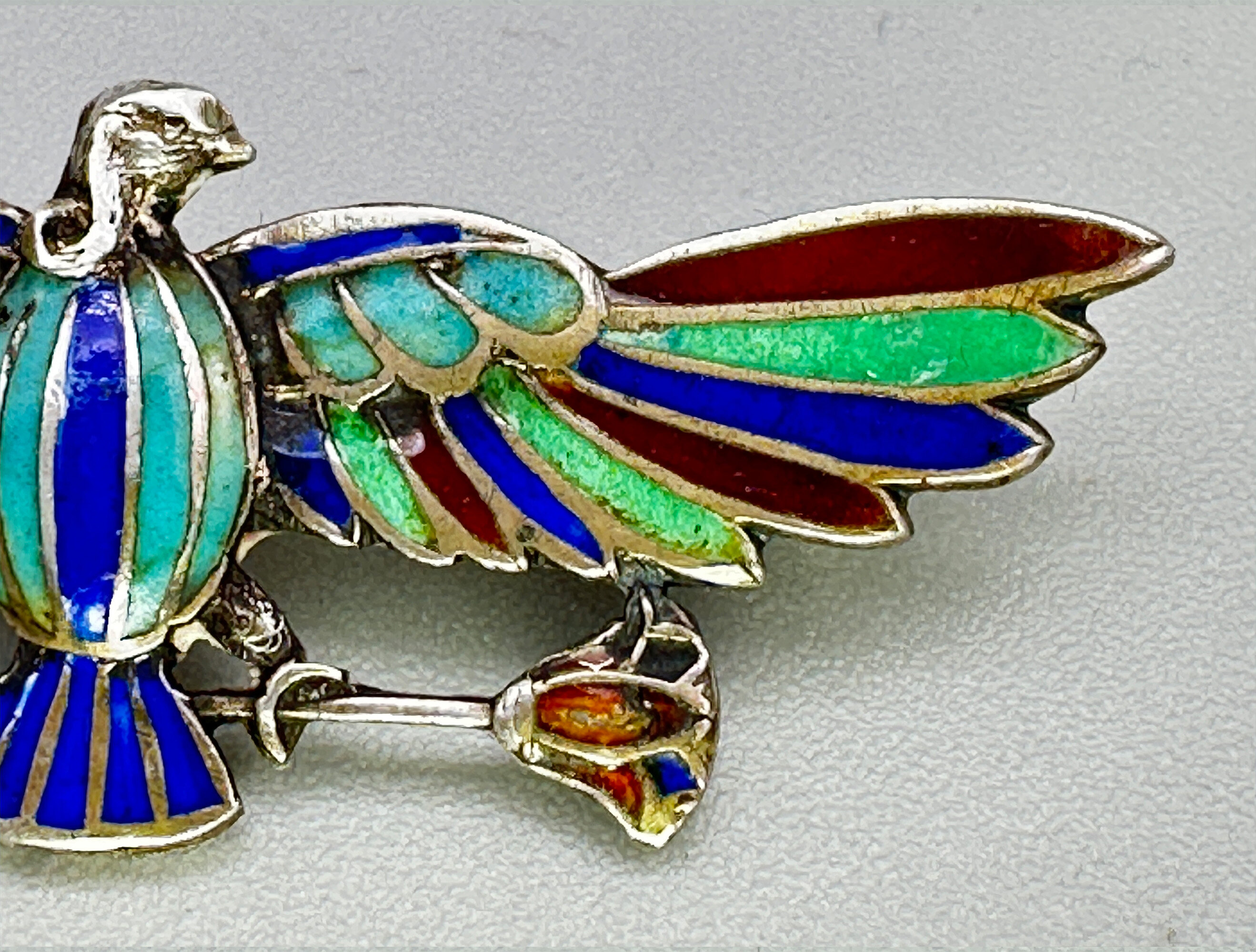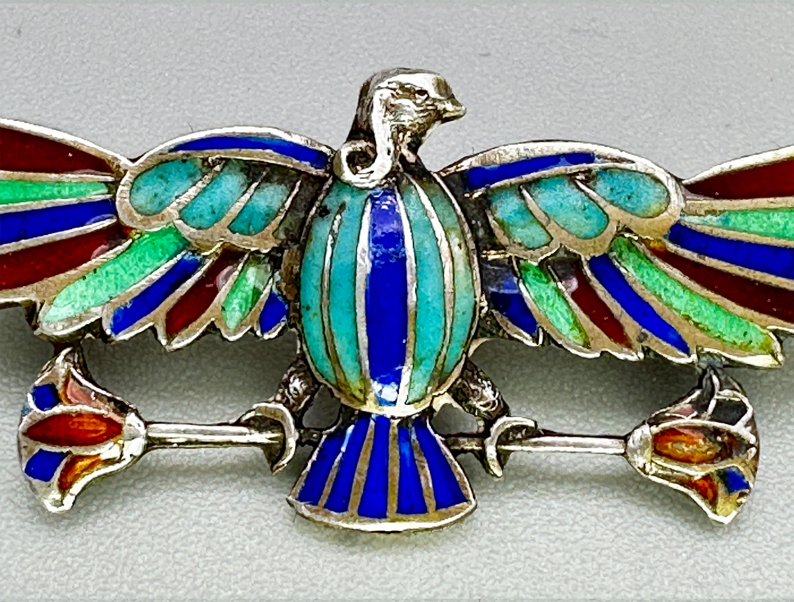 Georgian Egyptian Revival silver and enamel brooch c1820