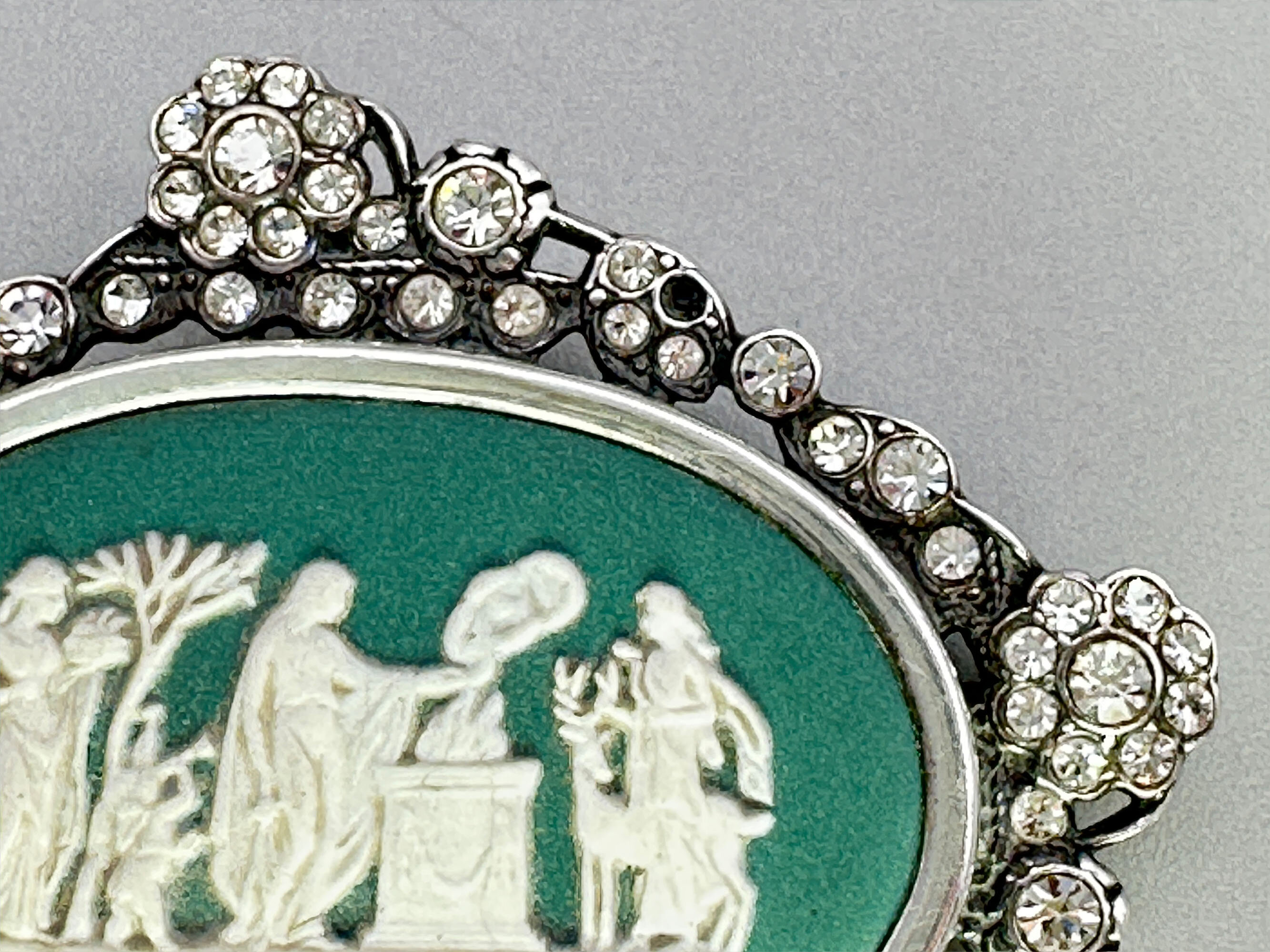 Wedgwood neoclassical brooch mounted in silver with paste stones, London 1973