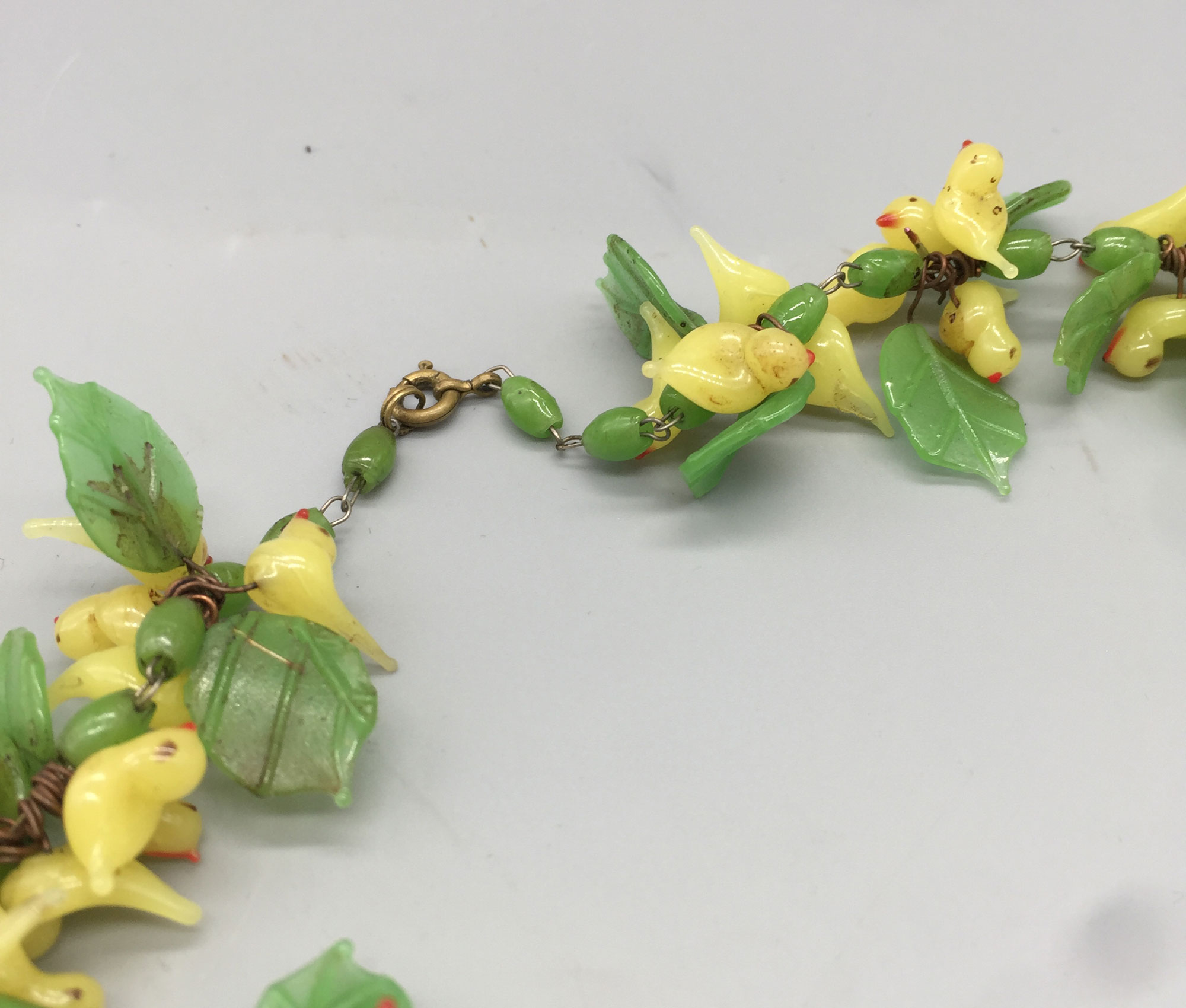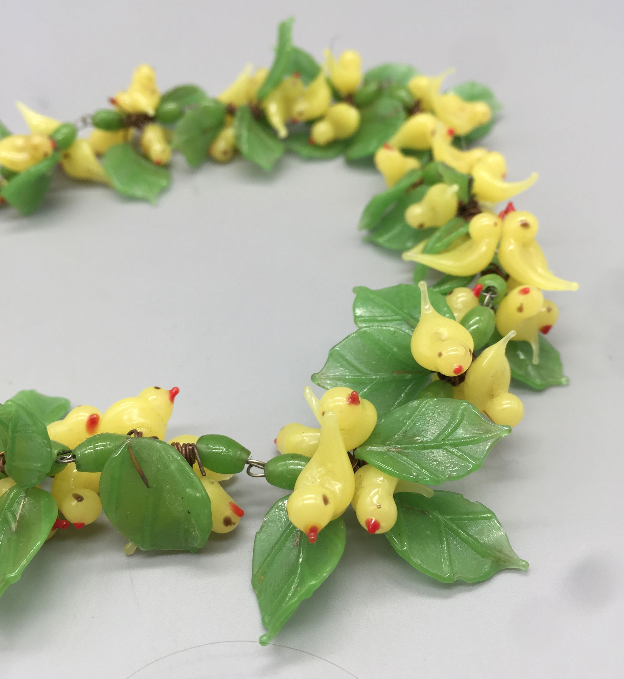 This is a wonderful necklace made of many Venetian glass birds and leaves. Such incredible glass work.| Size: | 44 cm long |