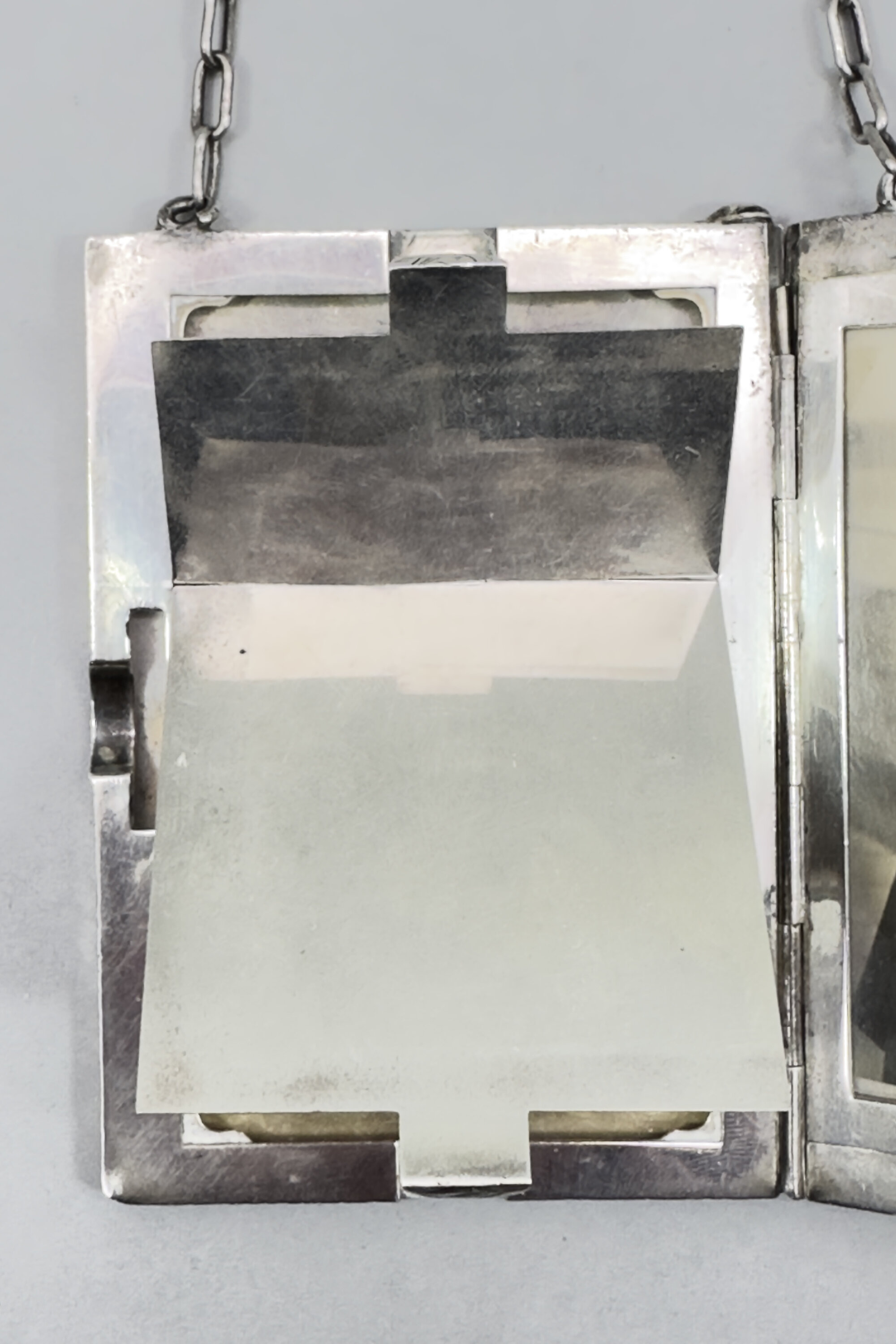 Art Deco silver travel minaudiere purse with photo portraits 1920s