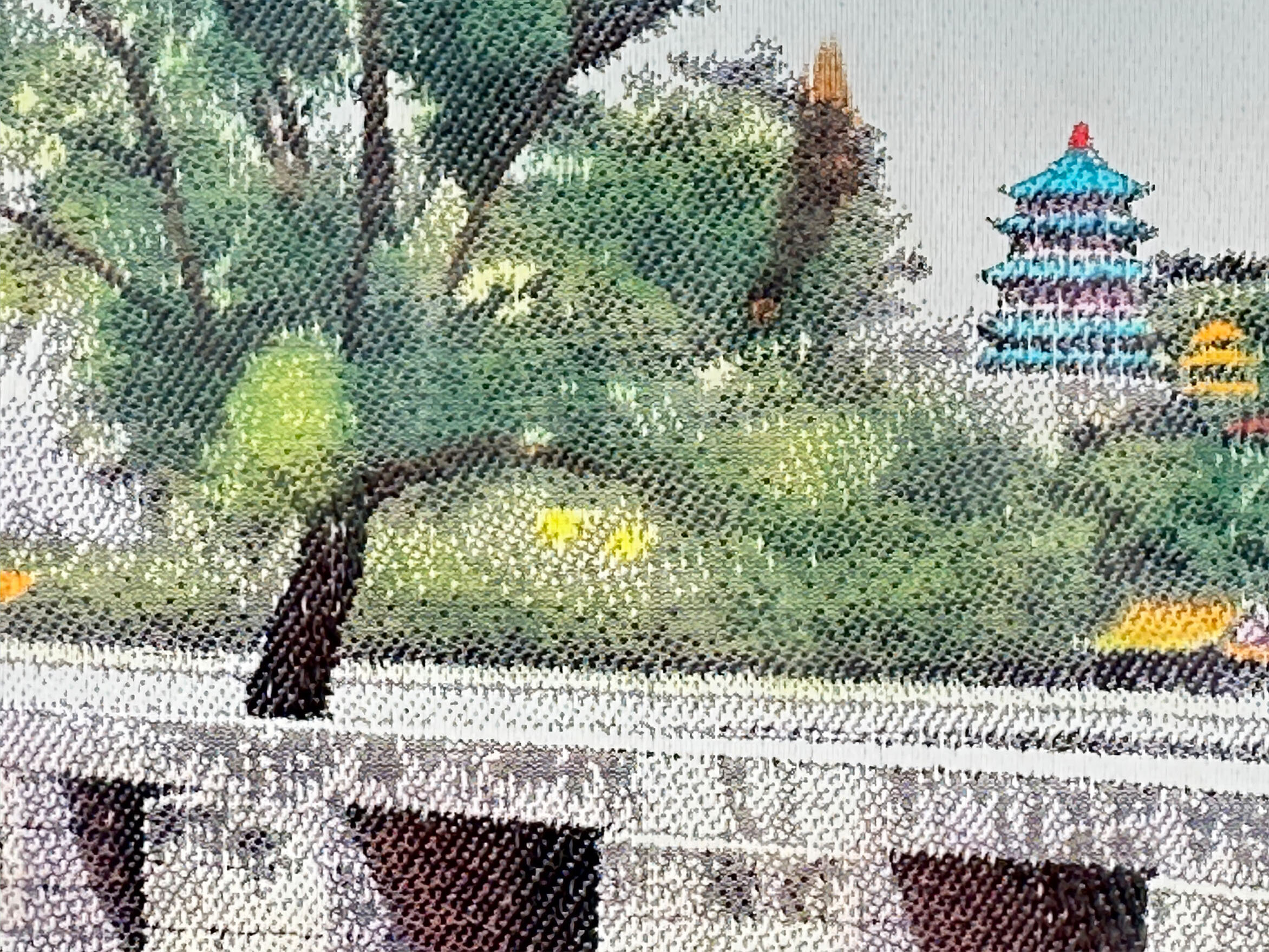 Chinese silk textile picture, Zhichun Pavilion, the Summer Palace, C20th