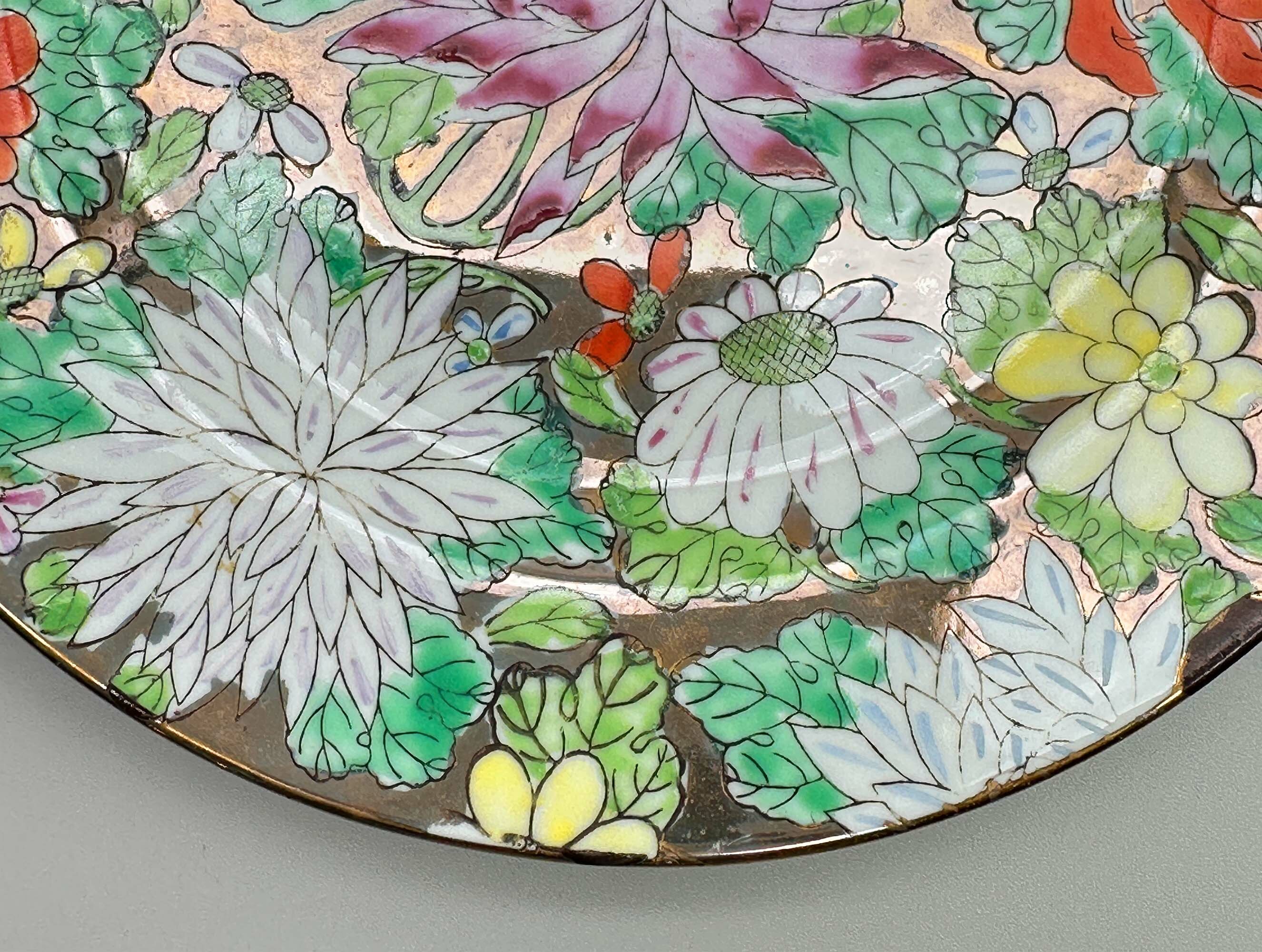 Two similar Chinese Mille Fleur pattern plates, mid C20th