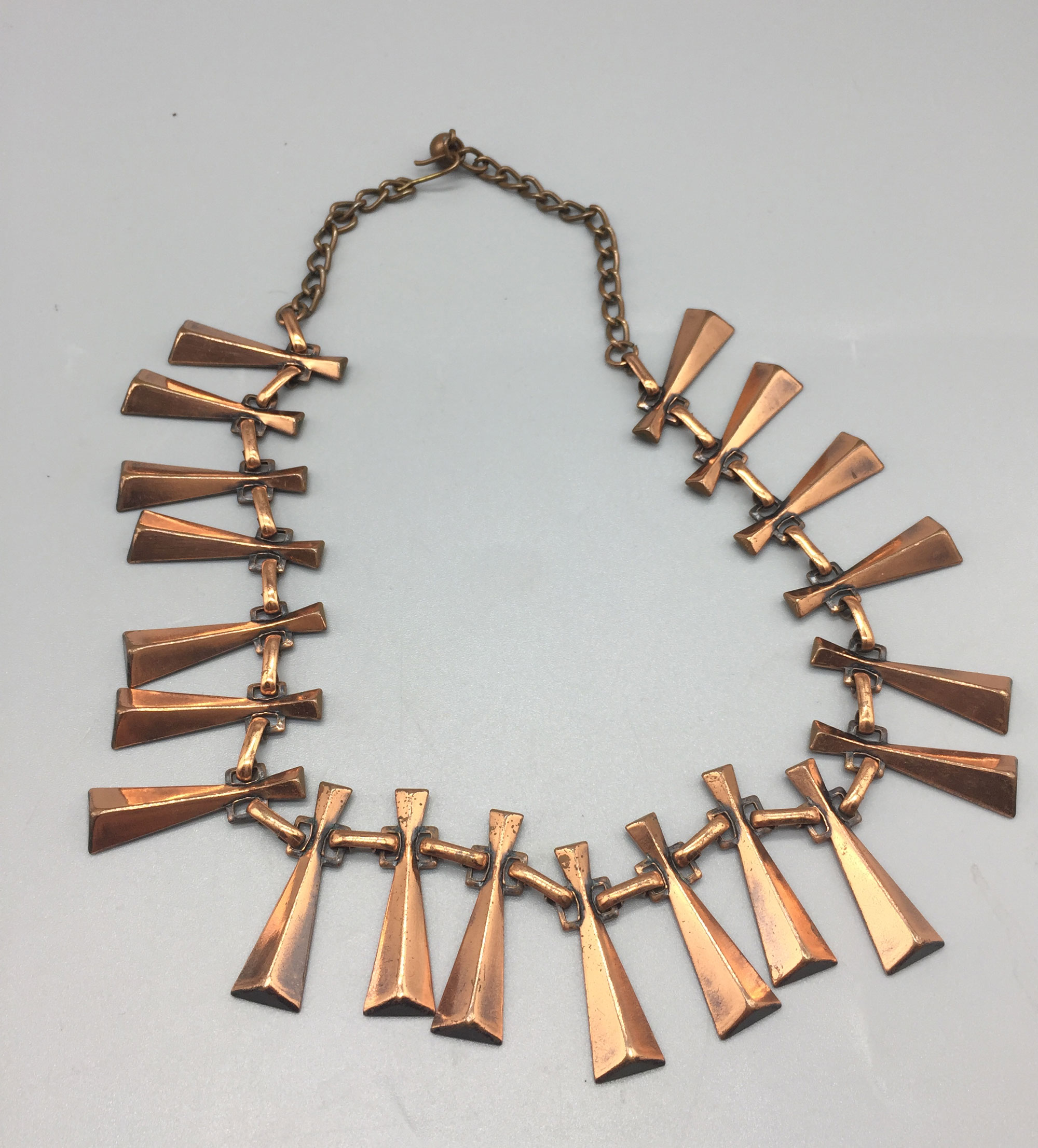 This is an unusual copper necklace with baton stations.| Size: | 42 x 2.5 cm |