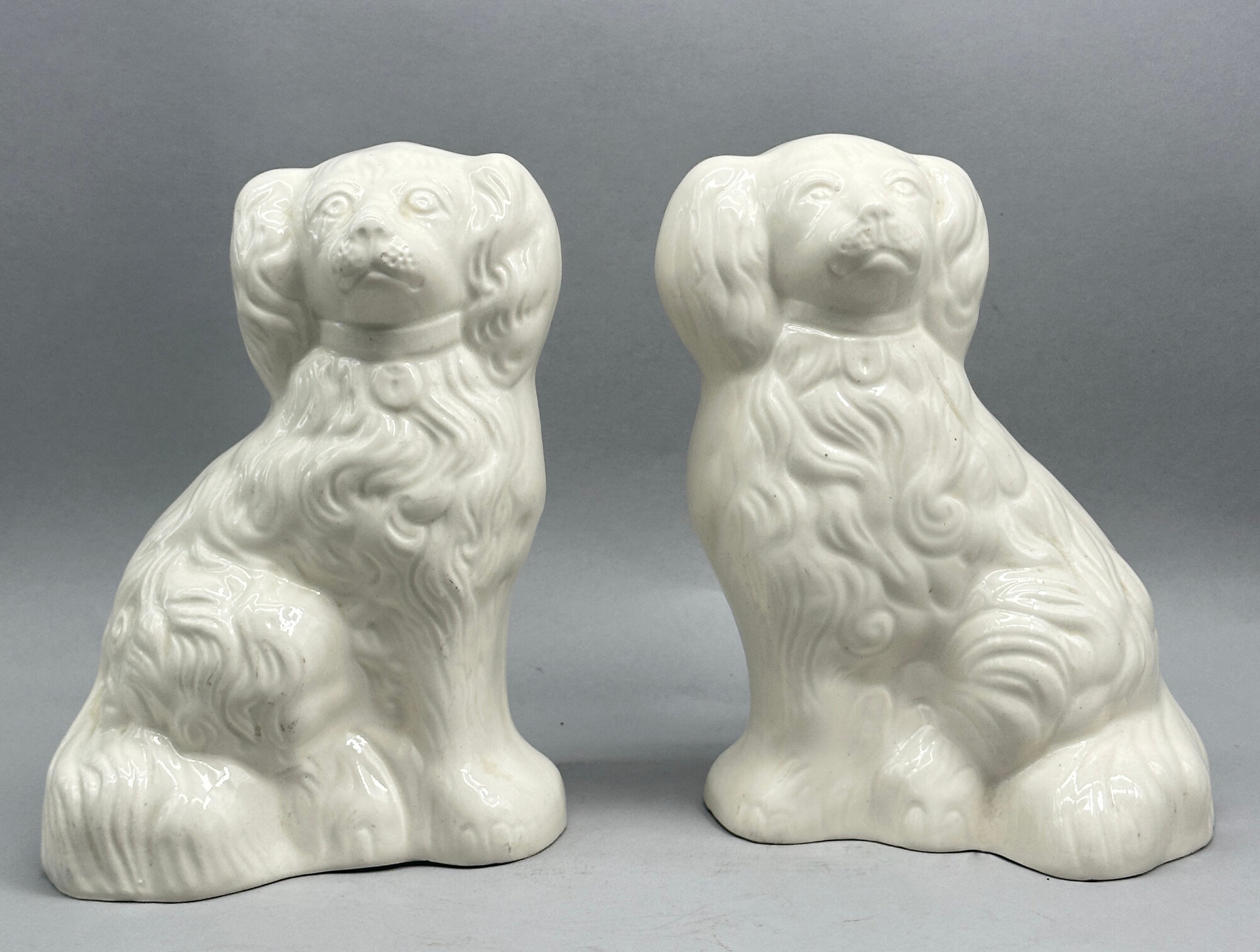 An unusual pair of white glaze models of Spaniels, Beswick, 1960s
