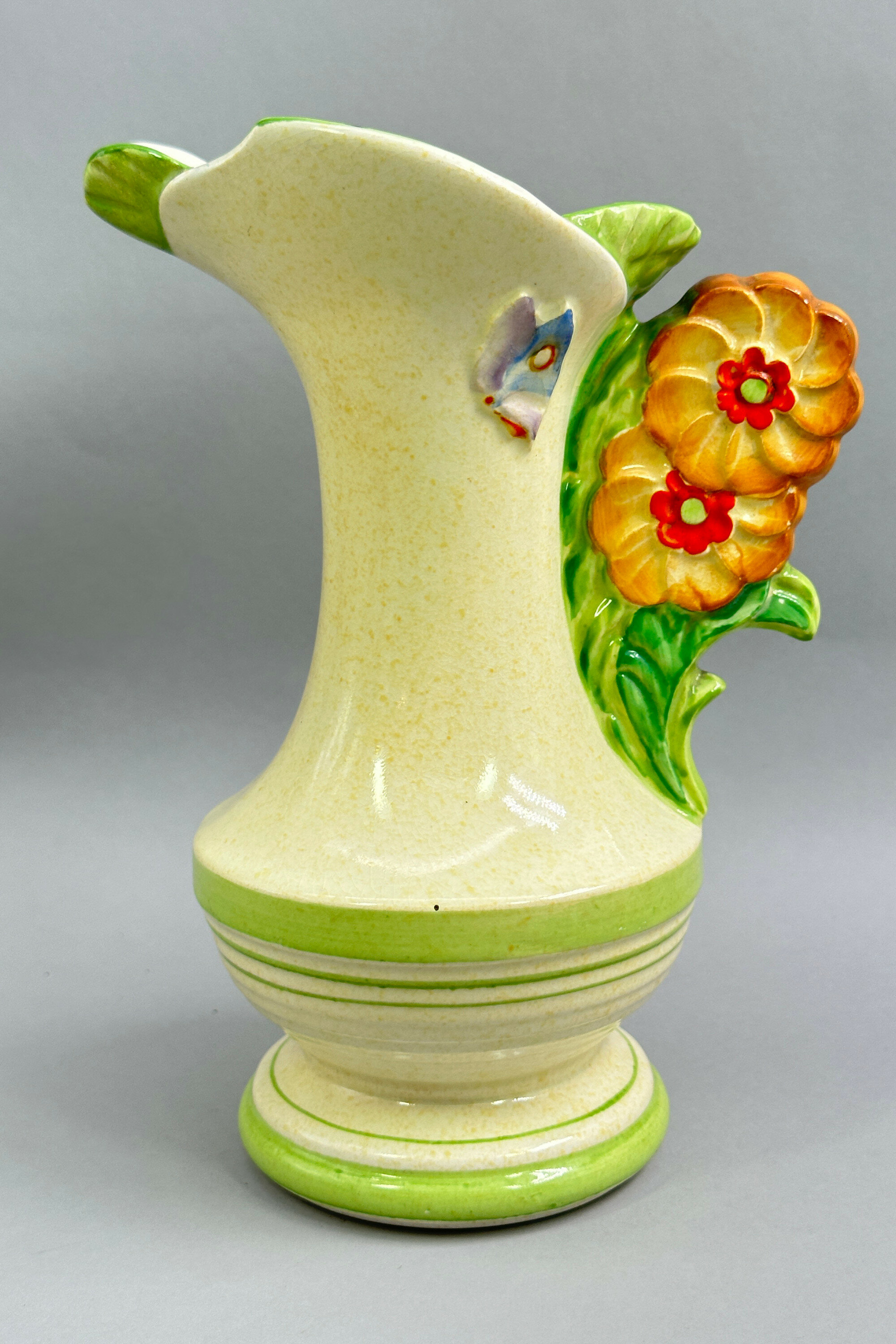 Art Deco Style Ceramic Jug with Floral Handle, probably 1930s