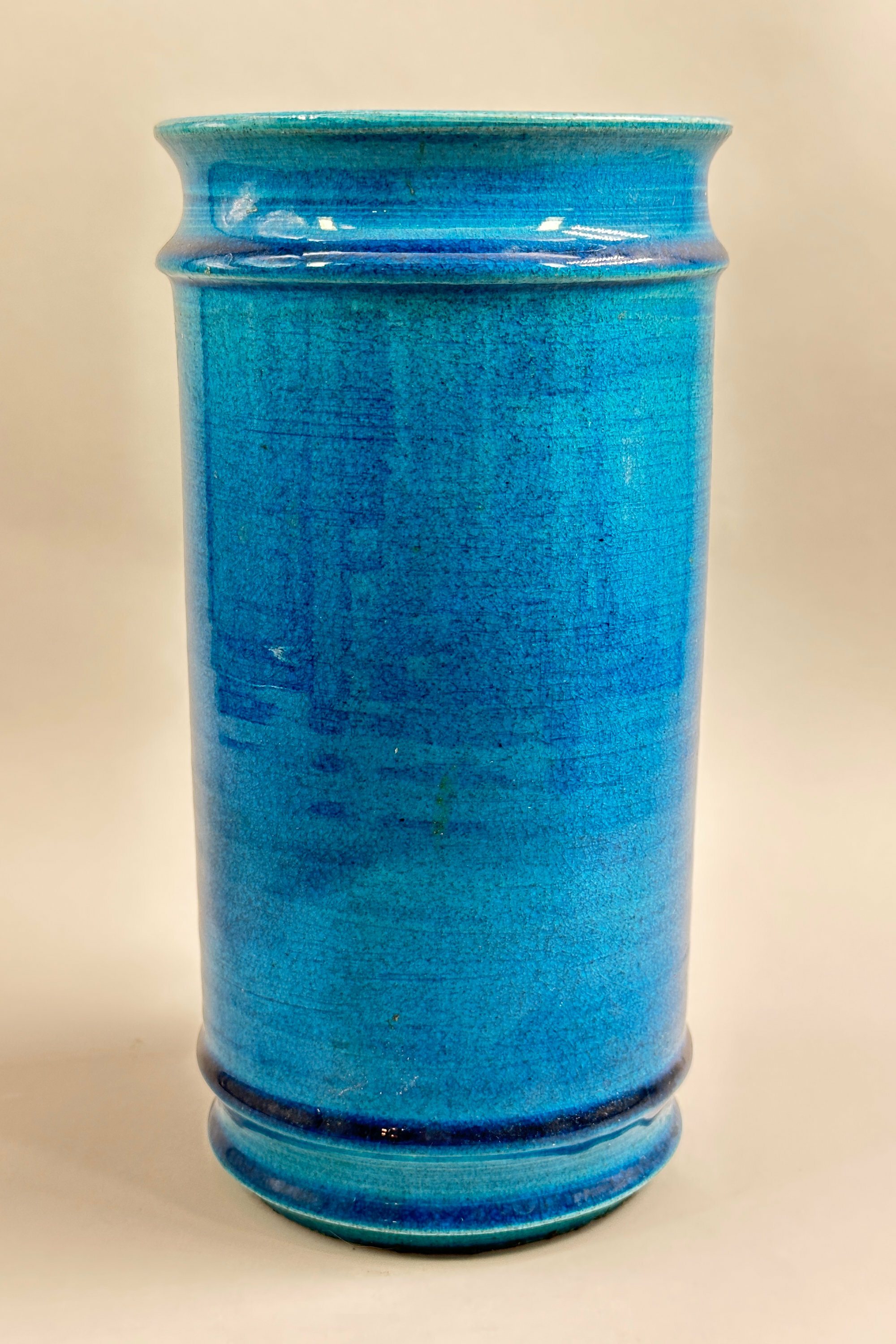 Cylindrical Vase, Herman Kähler, HAK, blue glazed stoneware, 1950s
