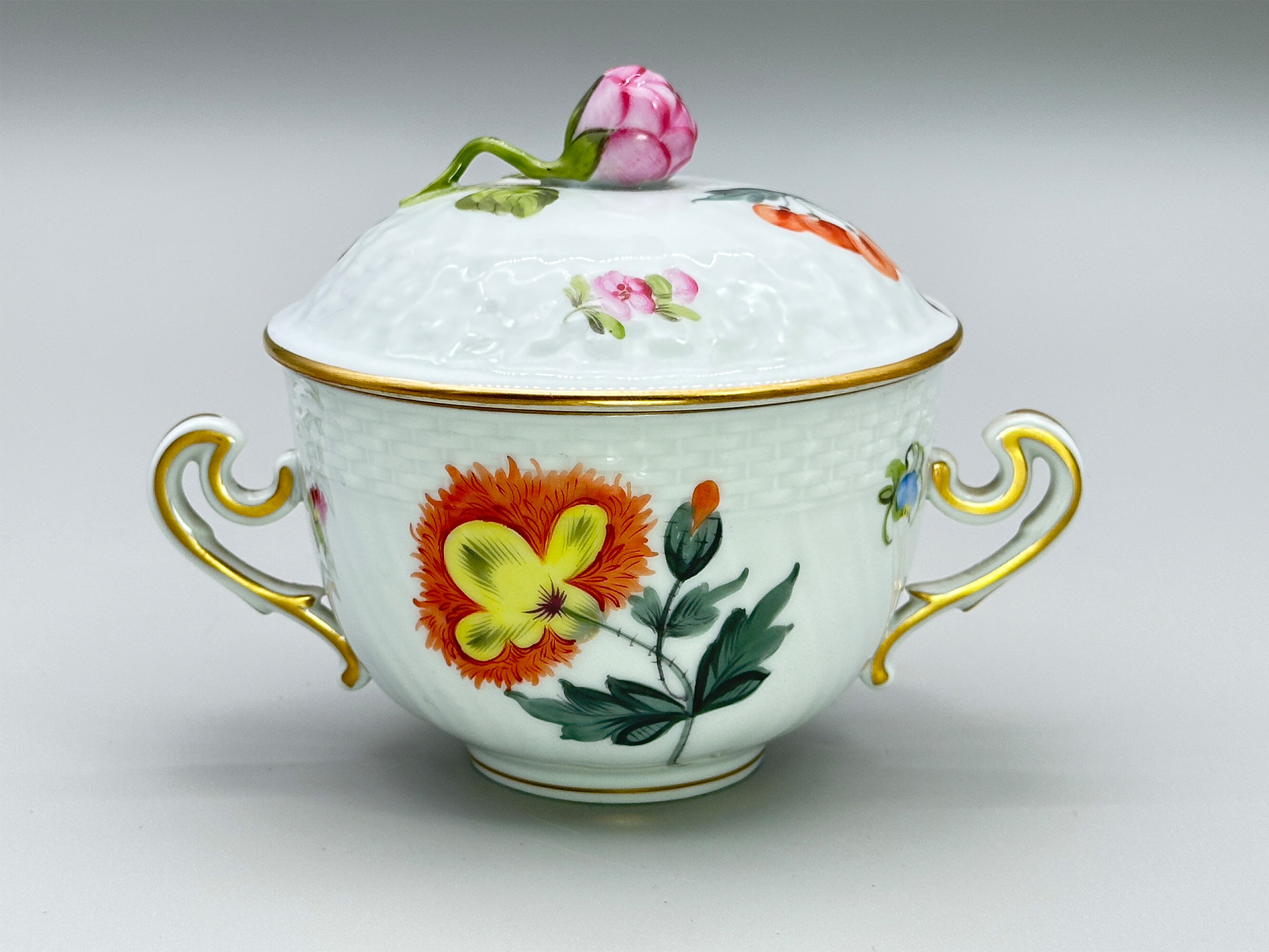 Herend écuelle and cover decorated flowers, marked, late C20th