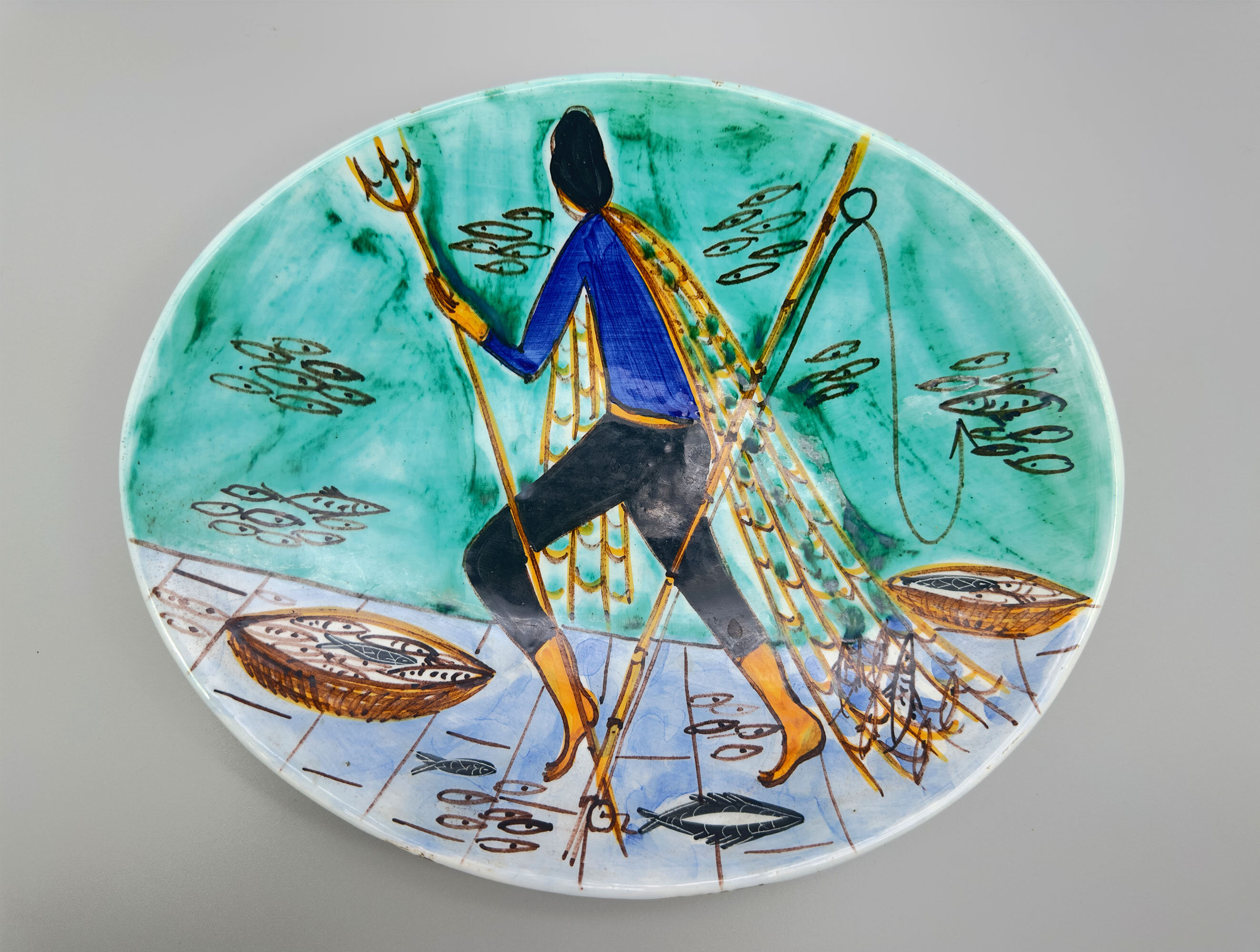 Italian oval dish decorated with a fisherman, S.IC.A. Vicenza, mid C20th
