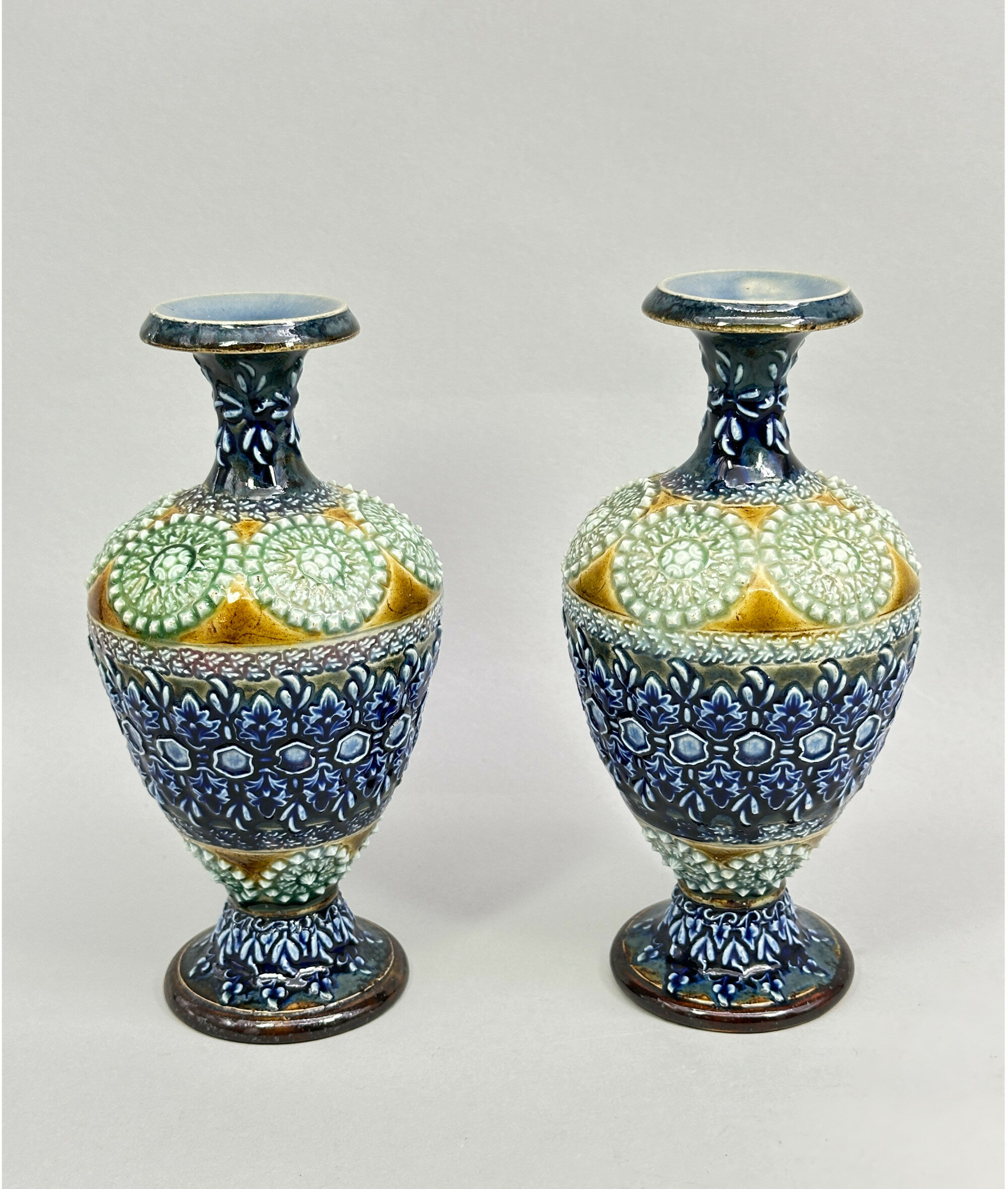 Pair of Doulton Lambeth Vases, signed and dated 1882
