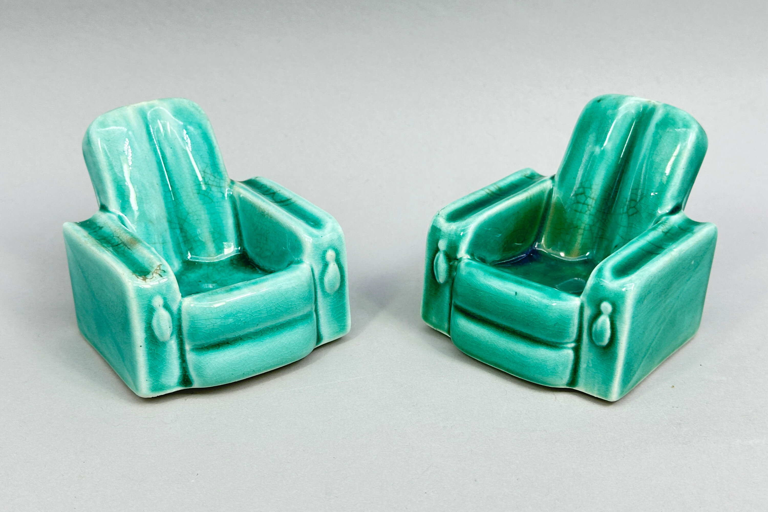 Pair of Vintage Art Deco style armchair Pipe Rests, English c1930