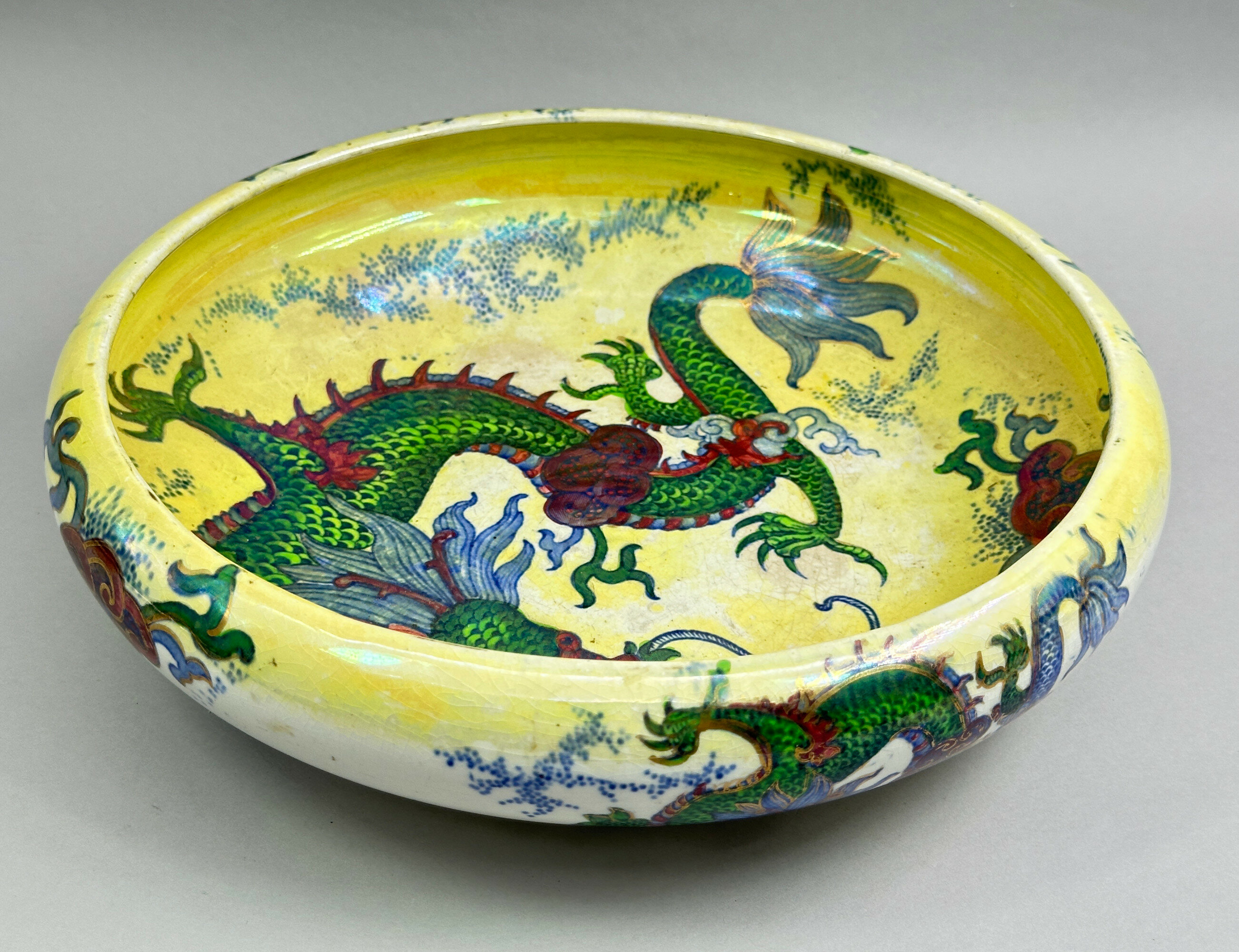 Yellow ground Bursley Ware Dragon Bowl by Frederick Rhead, circa 1920