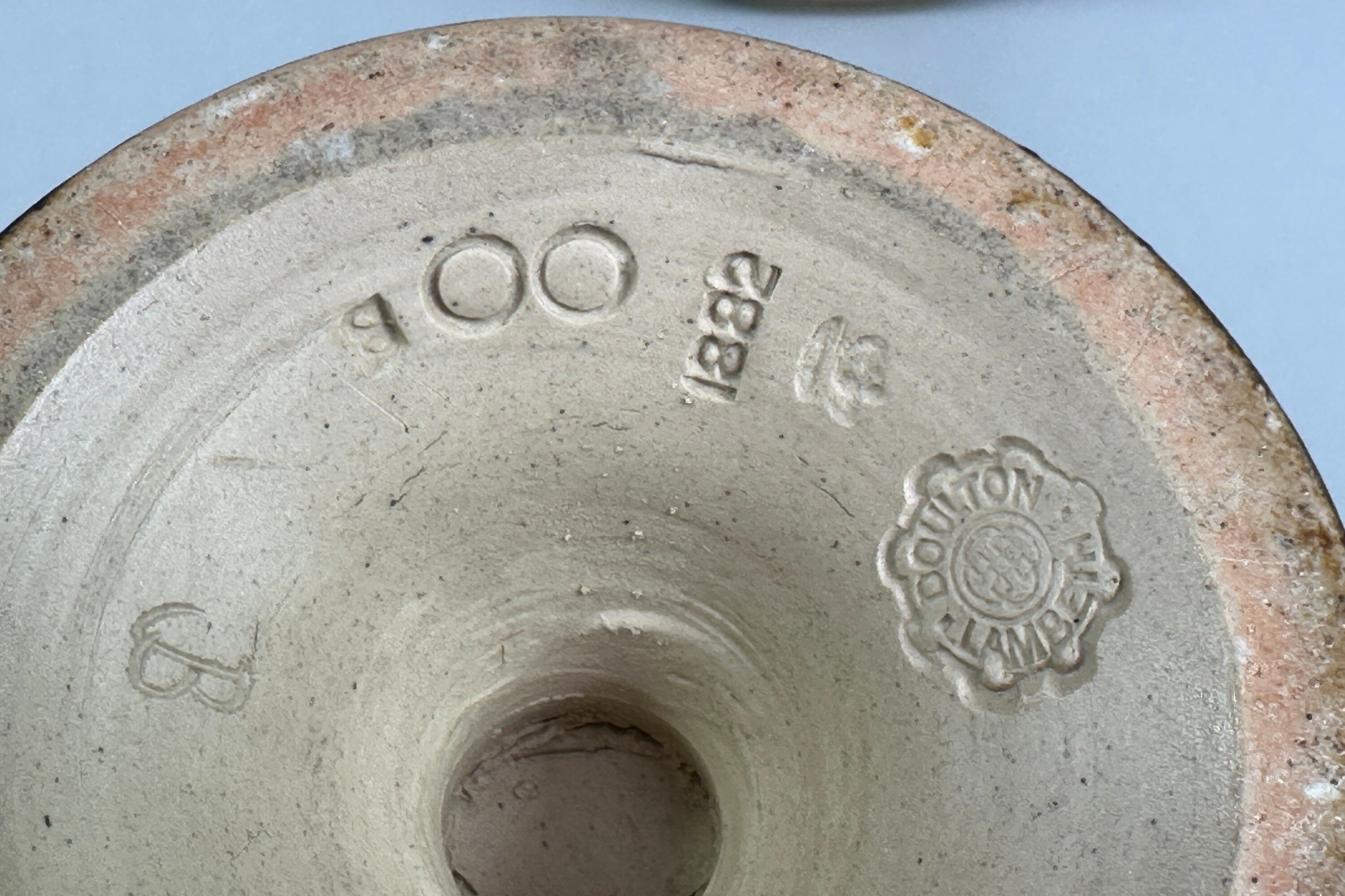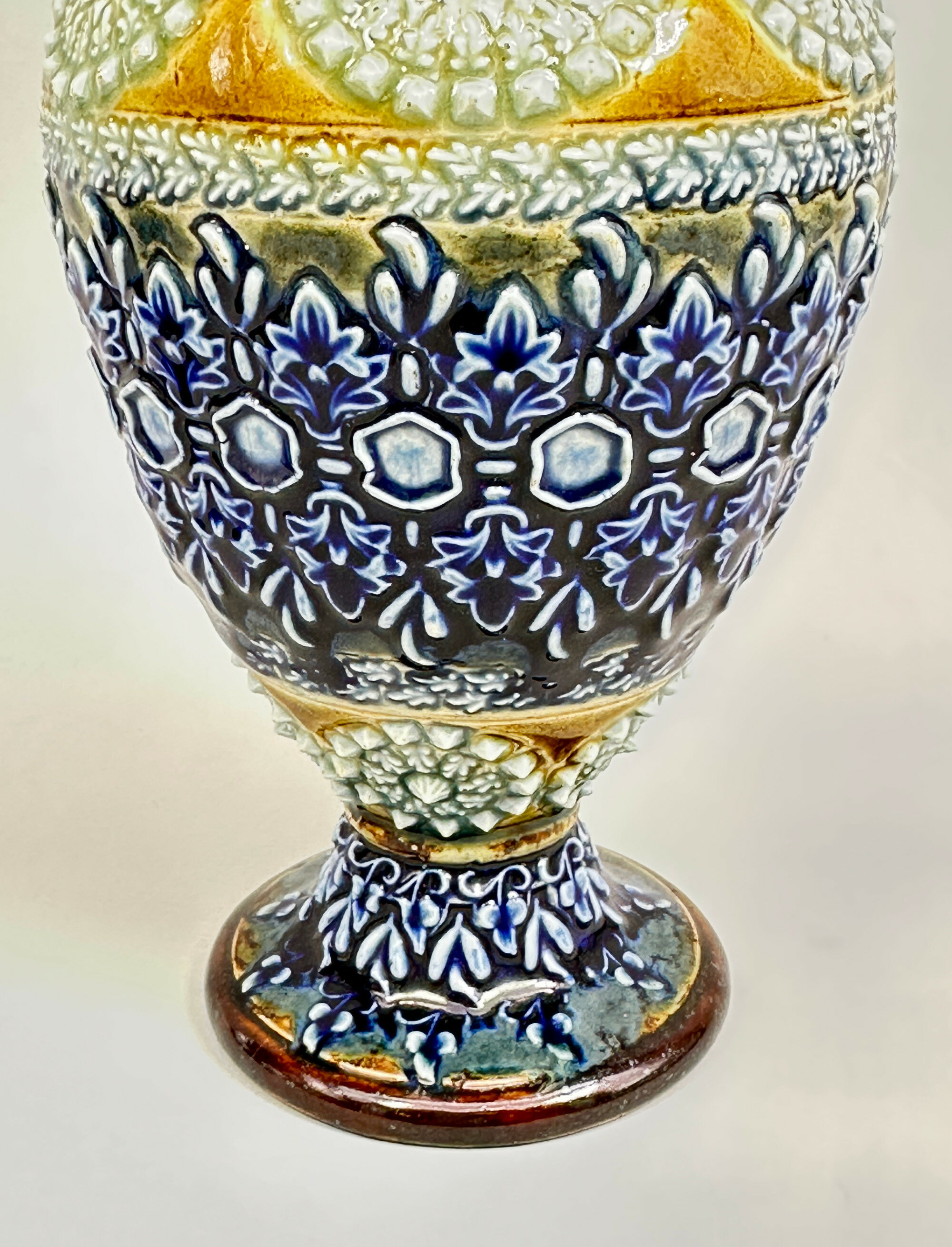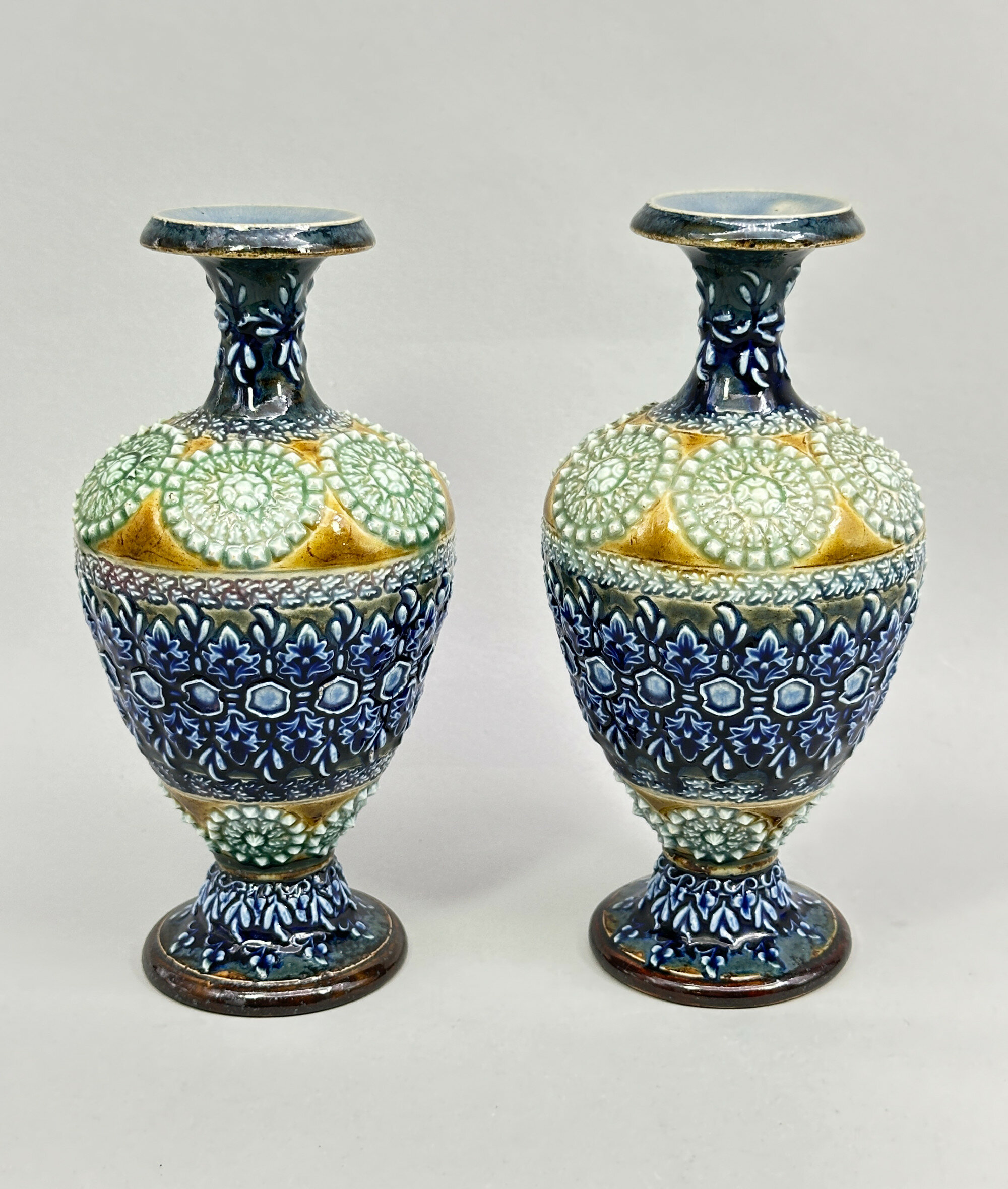 In general, Doulton designs were often both striking an experimental and this pair of vases is an example of their work at its best, a striking form combined with skilful decoration making them true collector’s items.