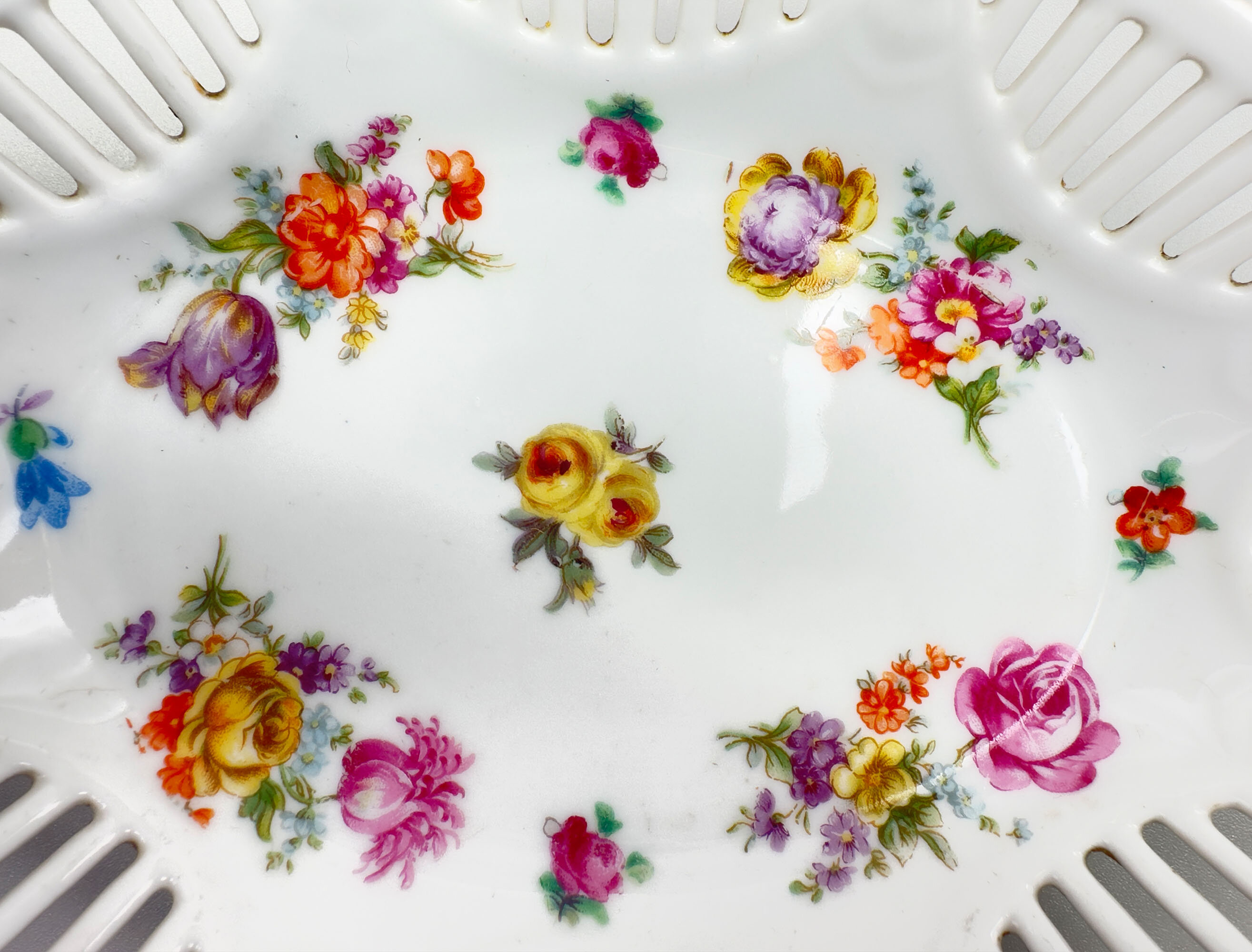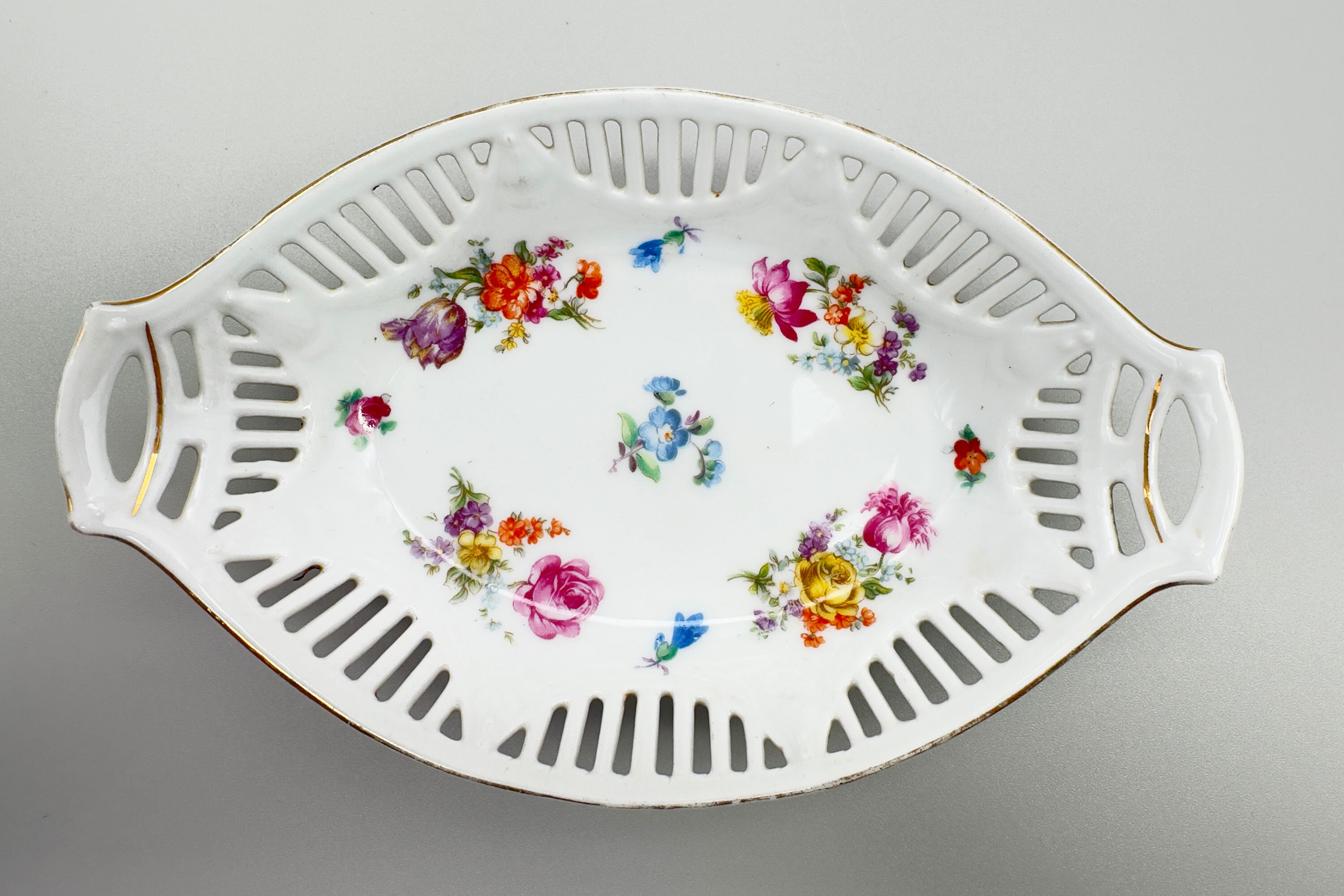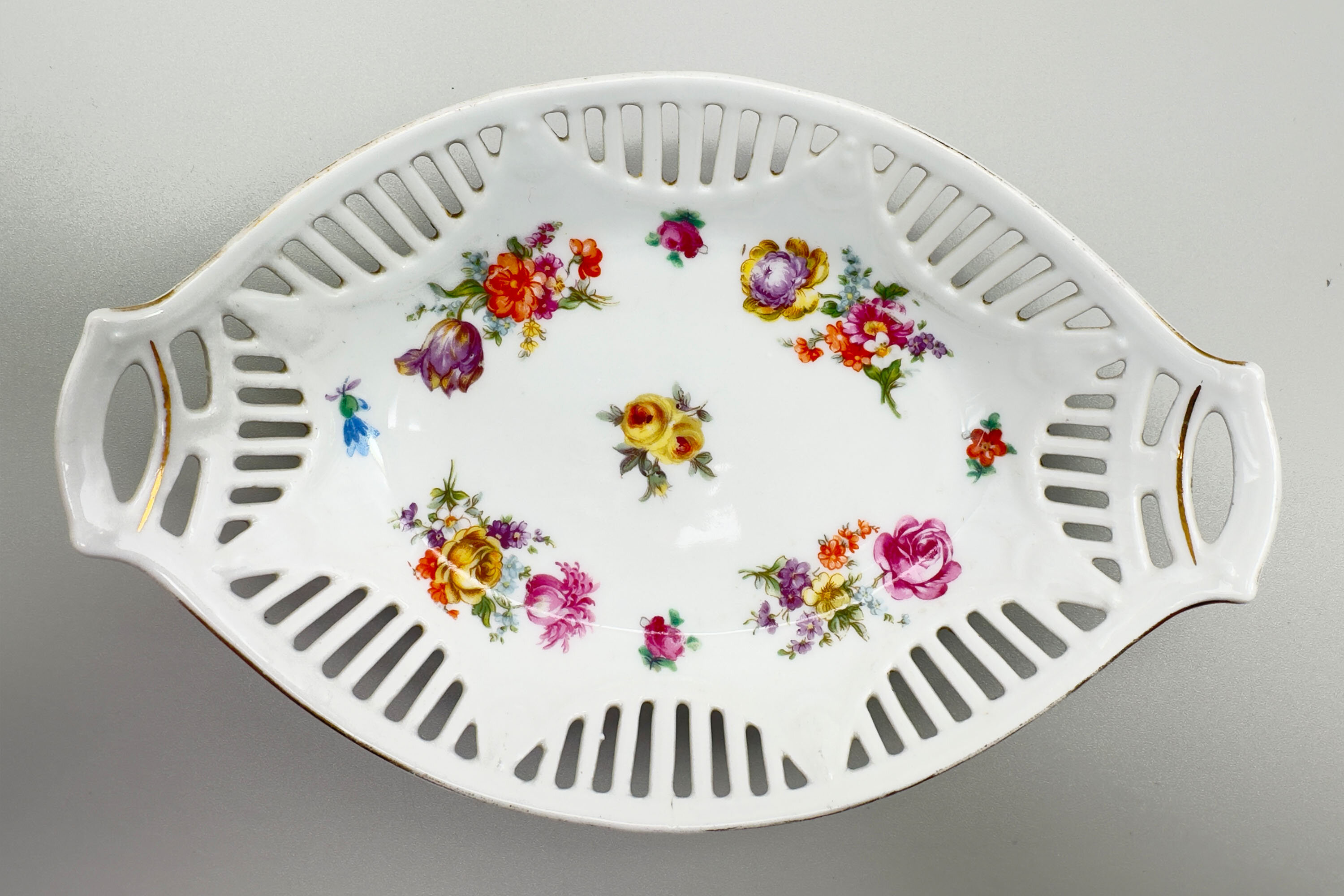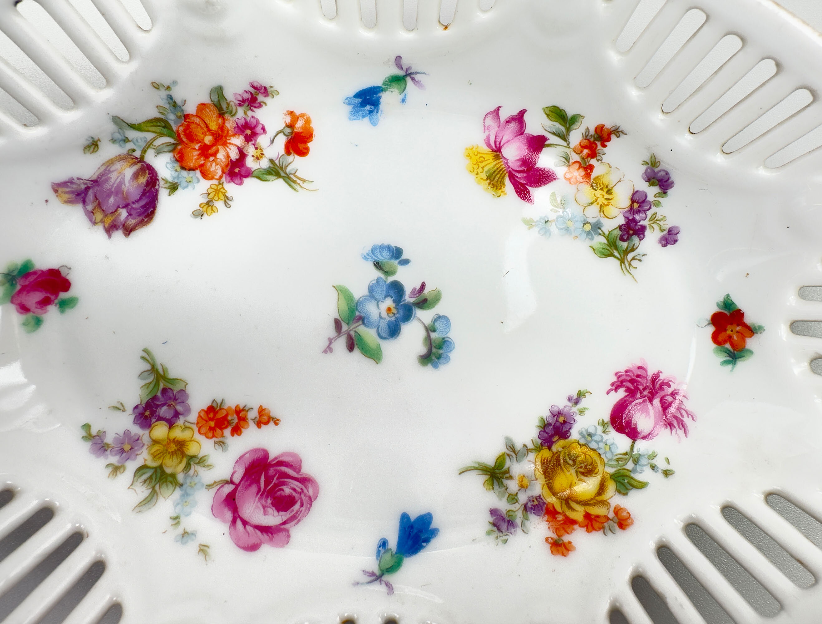 Pair of reticulated edge floral decorated Dishes, Schumann Bavaria, Germany 1920s