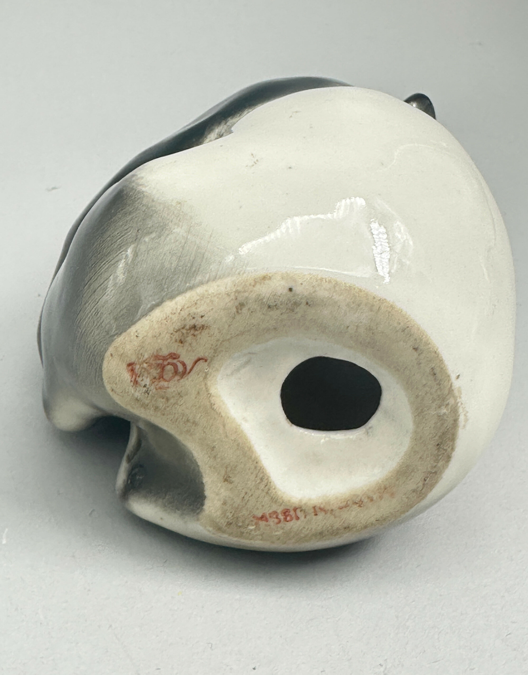 This is an amusing figure of a seated Panda looking enquiringly outwards and with its paws clasped together, the fur depicted in black with flecking and the face with expressive eyes and mustard colouring to the snout, signed to the base with a red stamped cipher device and the rather indistinct lettering ‘MADE IN USSR’. The cipher device in iron red is for the Lomonosov, factory situated in St Petersburg. With a history of production spanning back to the mid eighteenth century, Lomonosov became well known for its ceramic figures of animals in the mid twentieth century, expressively modelled and brightly coloured, including tigers, giraffes, dogs and, as here, pandas. This figure comes from the 'Porcelain Zoo' series created by the sculptor Pavel Veselov and the artist Victor Zhbanov and apparently comprising around a hundred different figurines. Dating here is determined by the form of the mark which was used from 1986 to 1992. Red was reserved for the best quality pieces and the mark itself is in the Russian alphabet (ЛФЗ), that is ‘LFZ’ in English which is an abbreviation of the factory name ‘Lomonosovkiy Farforoviy Zavod’. The words ‘MADE IN USSR’ may imply that the piece was intended for export. It would be hard not to imagine someone somewhere giving this animal a new home!| Size: | 13 cm H, 9 cm W |