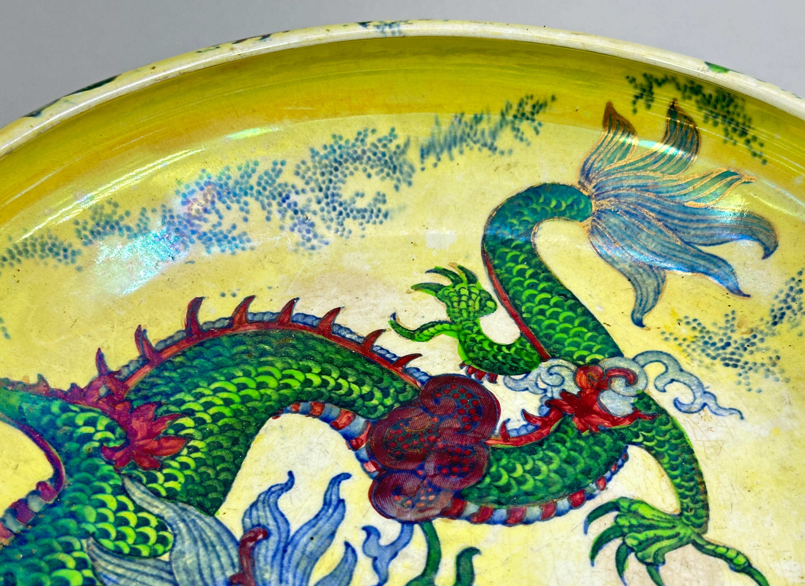 Yellow ground Bursley Ware Dragon Bowl by Frederick Rhead, circa 1920