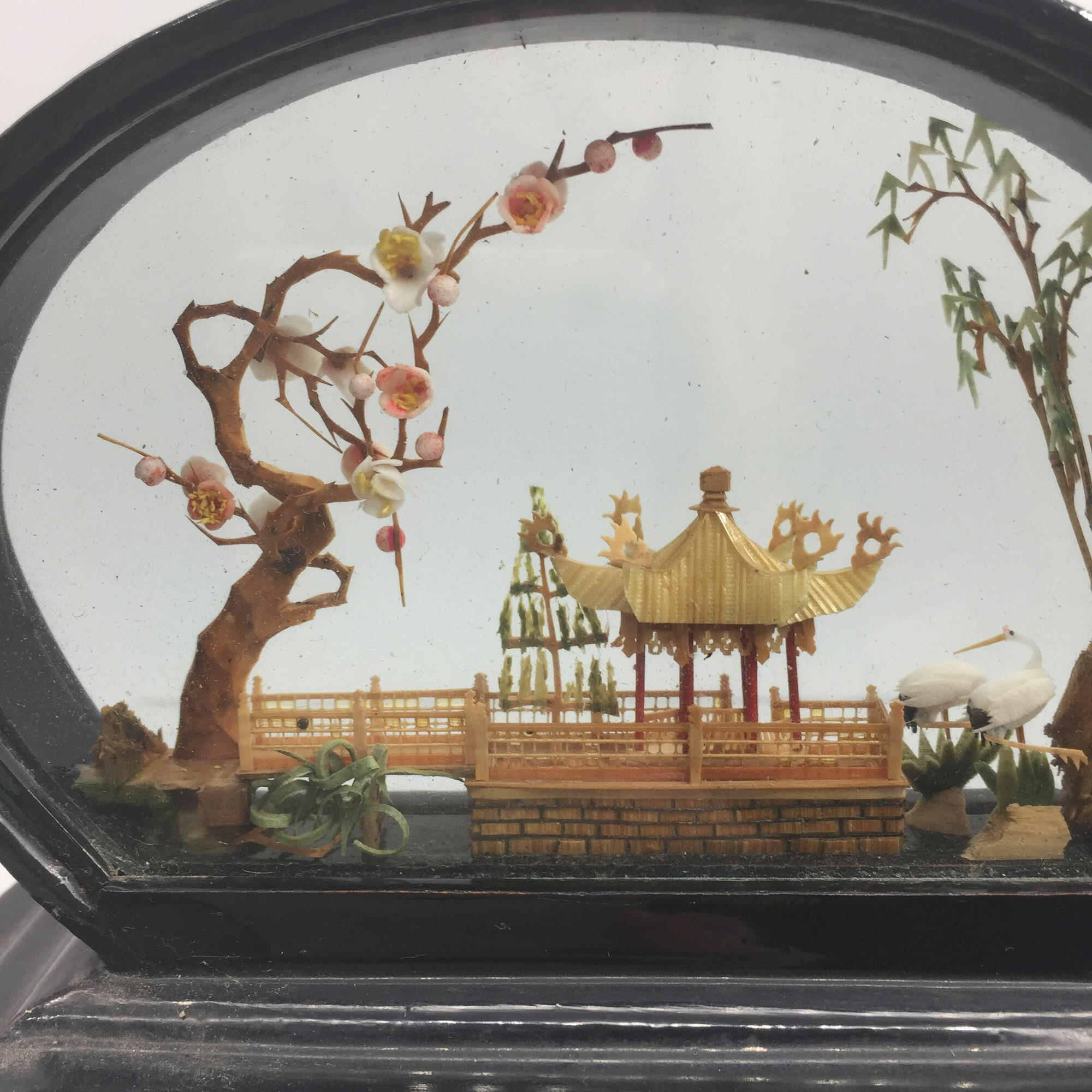 Very fine pair of vintage Chinese painted eggs in a pentagonal glass case