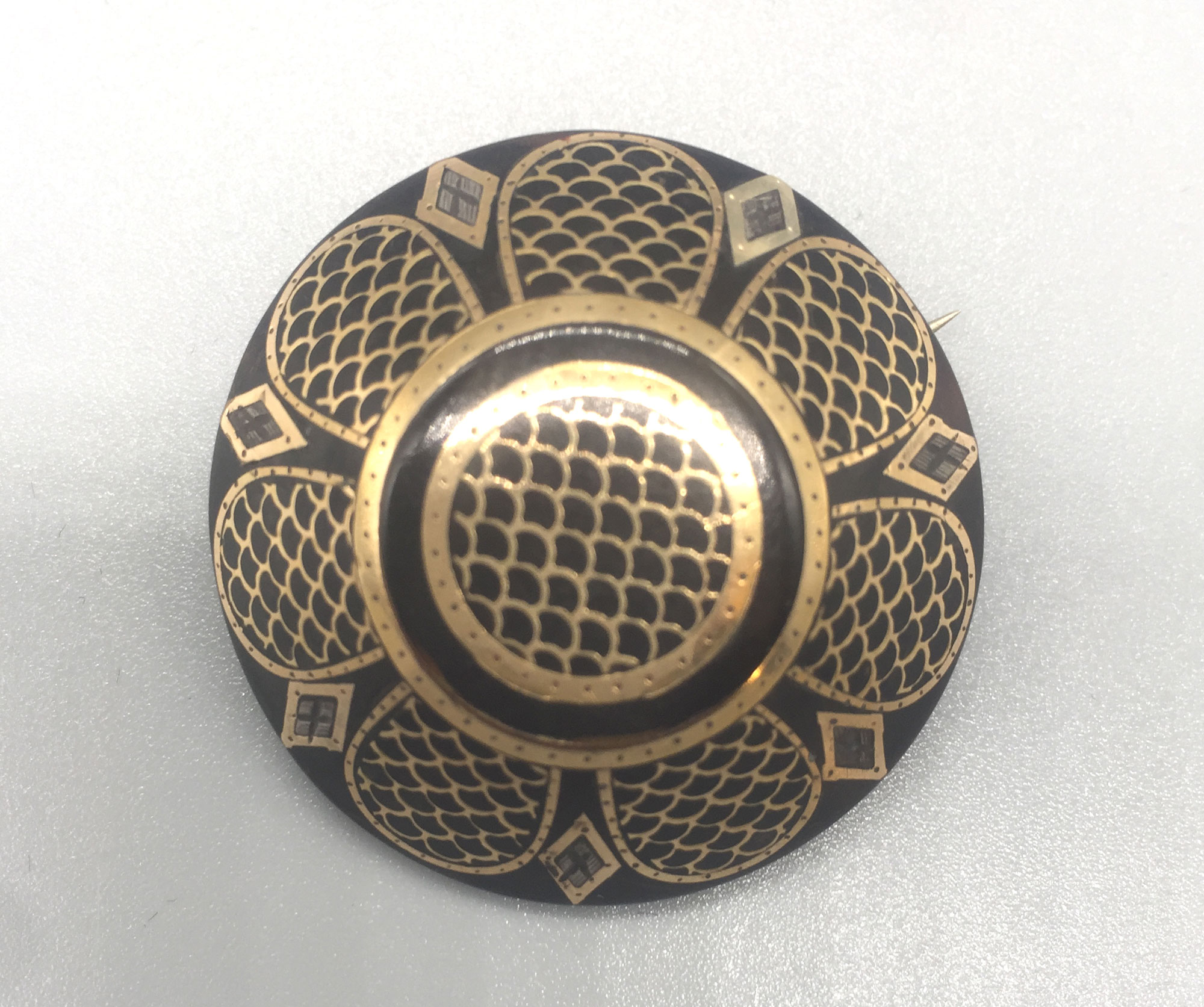 Victorian gold pendant with seed pearls on pearl necklace