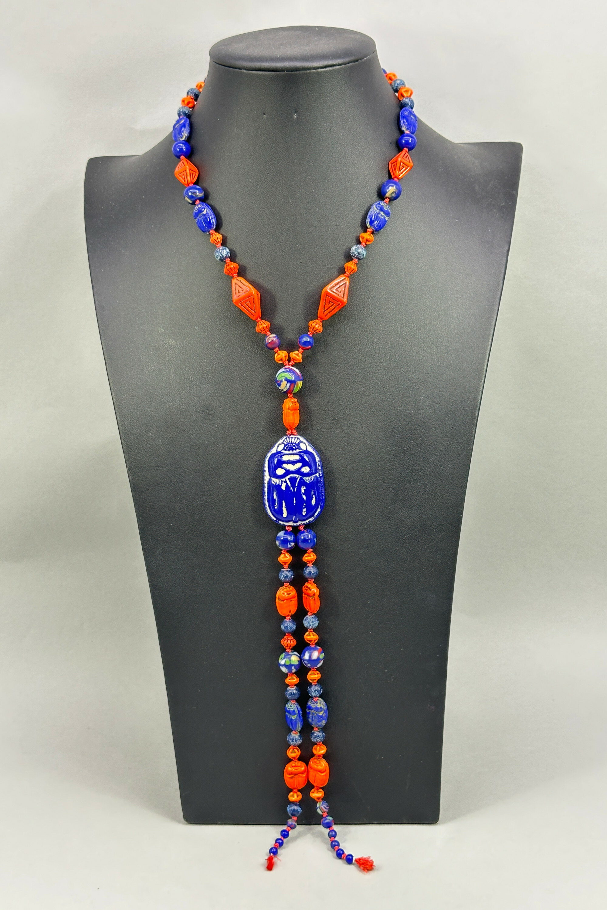 Egyptian Revival Czech glass large scarab sautoir necklace, attr. Neiger Brothers