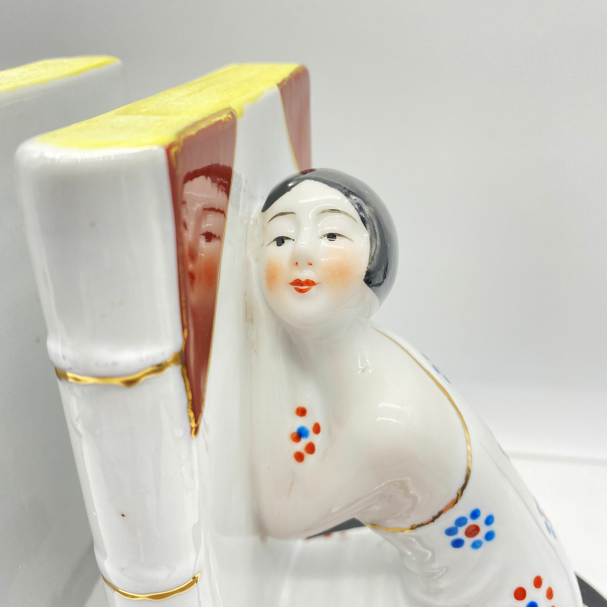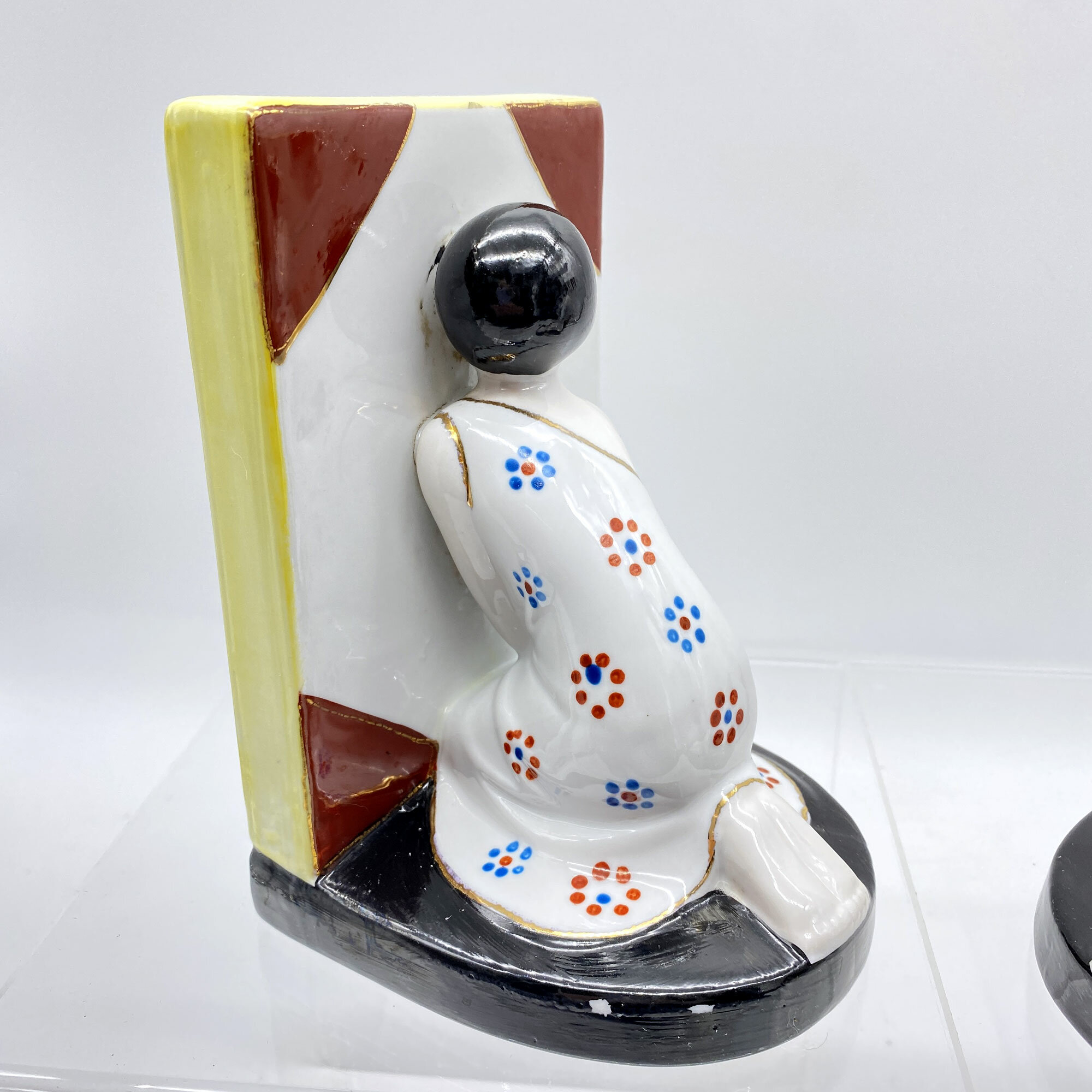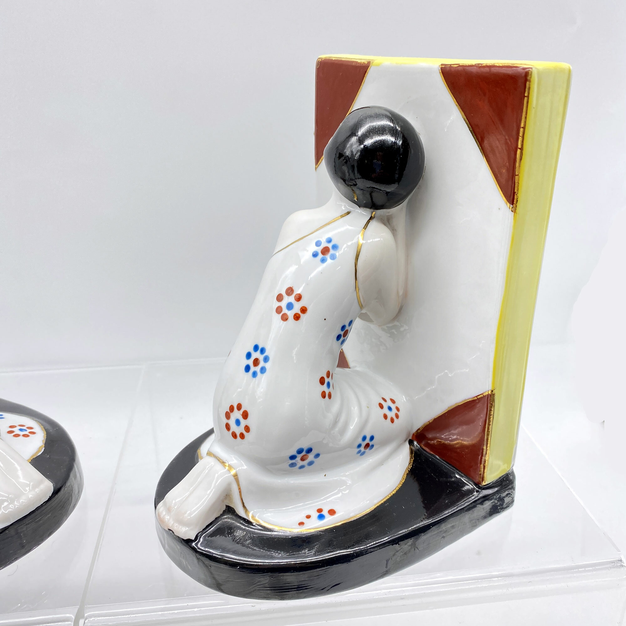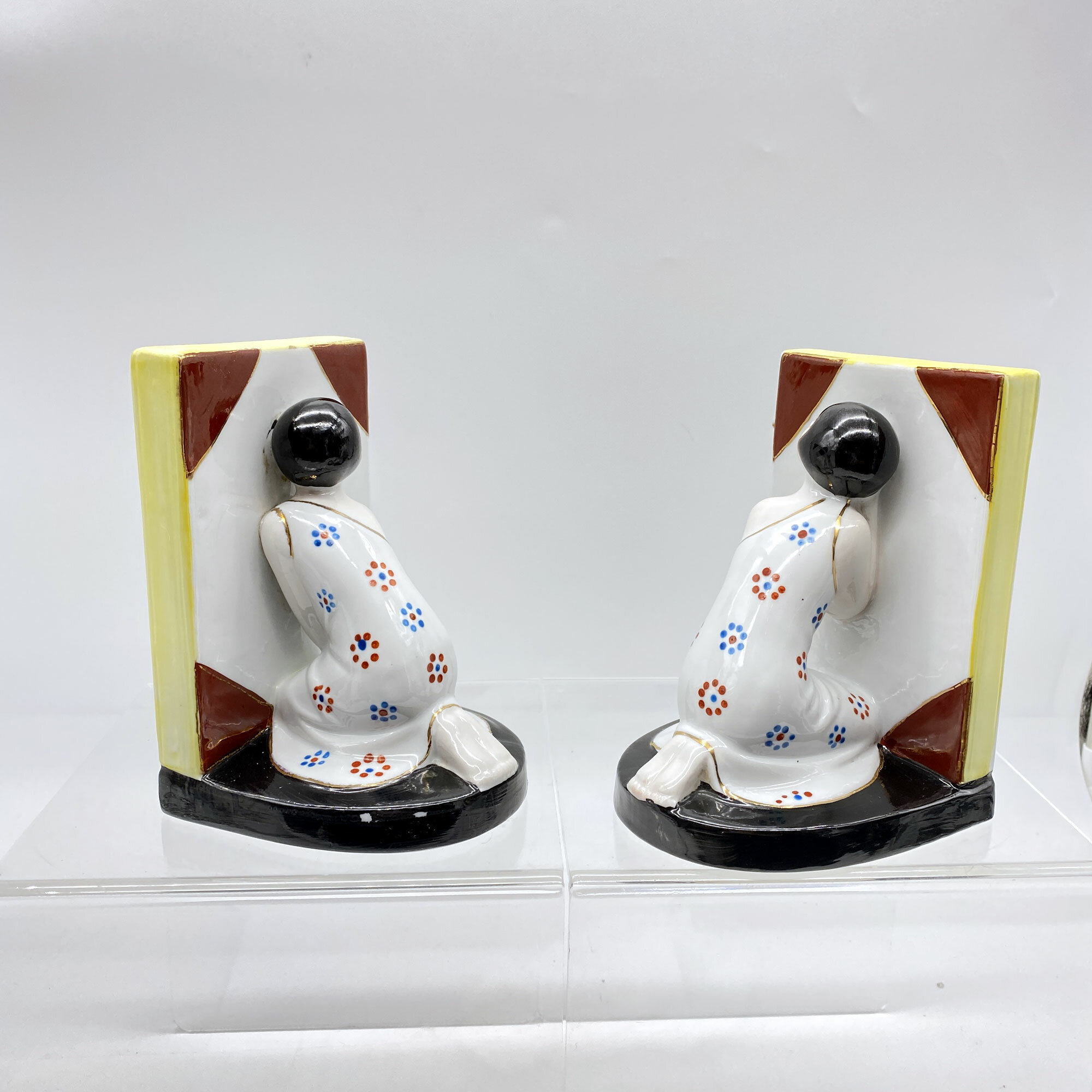 This is a wonderful pair of ceramic bookends with kneeling Art Deco figures, British, 1920s| Size: | 15 x 10 x 11 cm |
