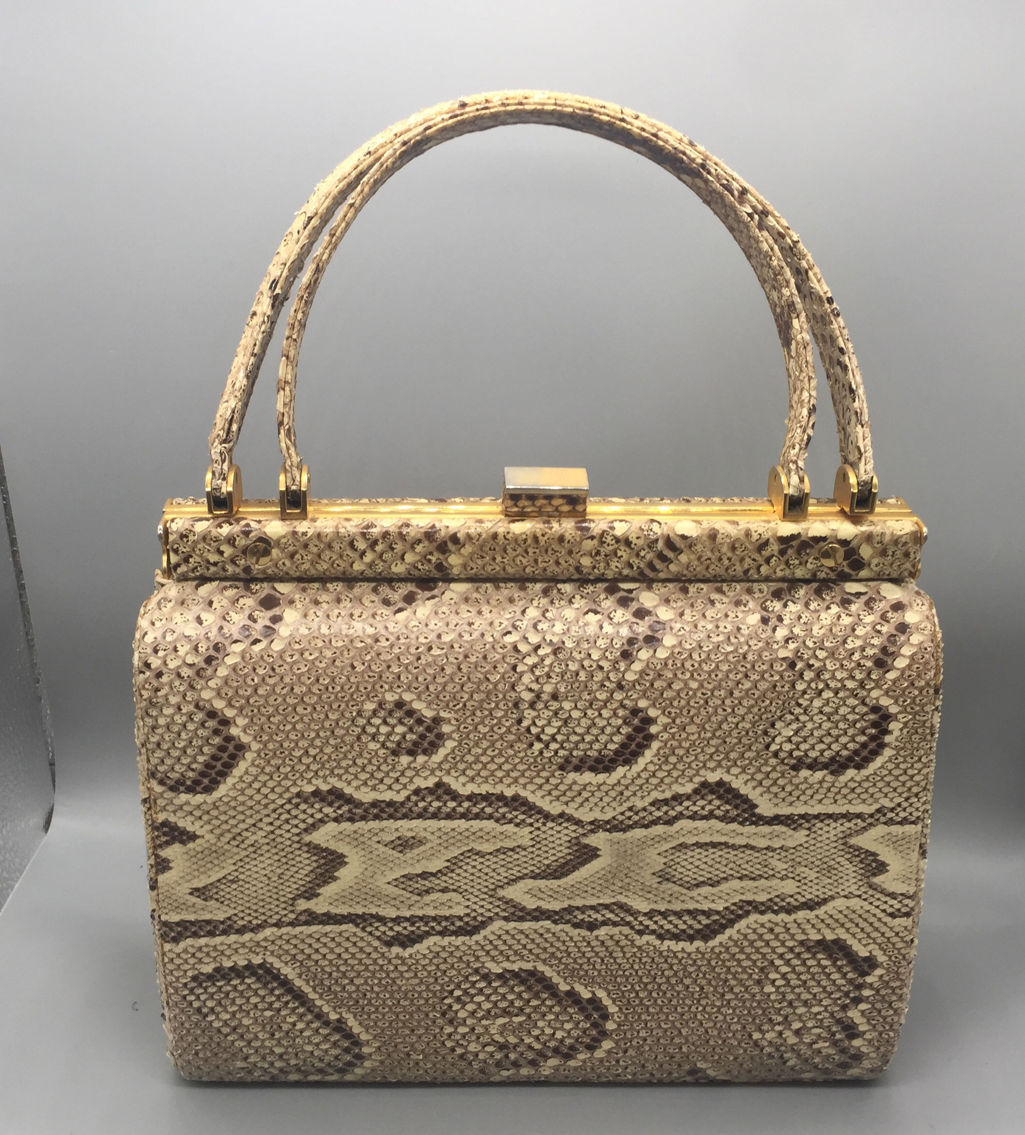 Classic Black Crocodile Handbag, Unusual design from Harrods, 1960s