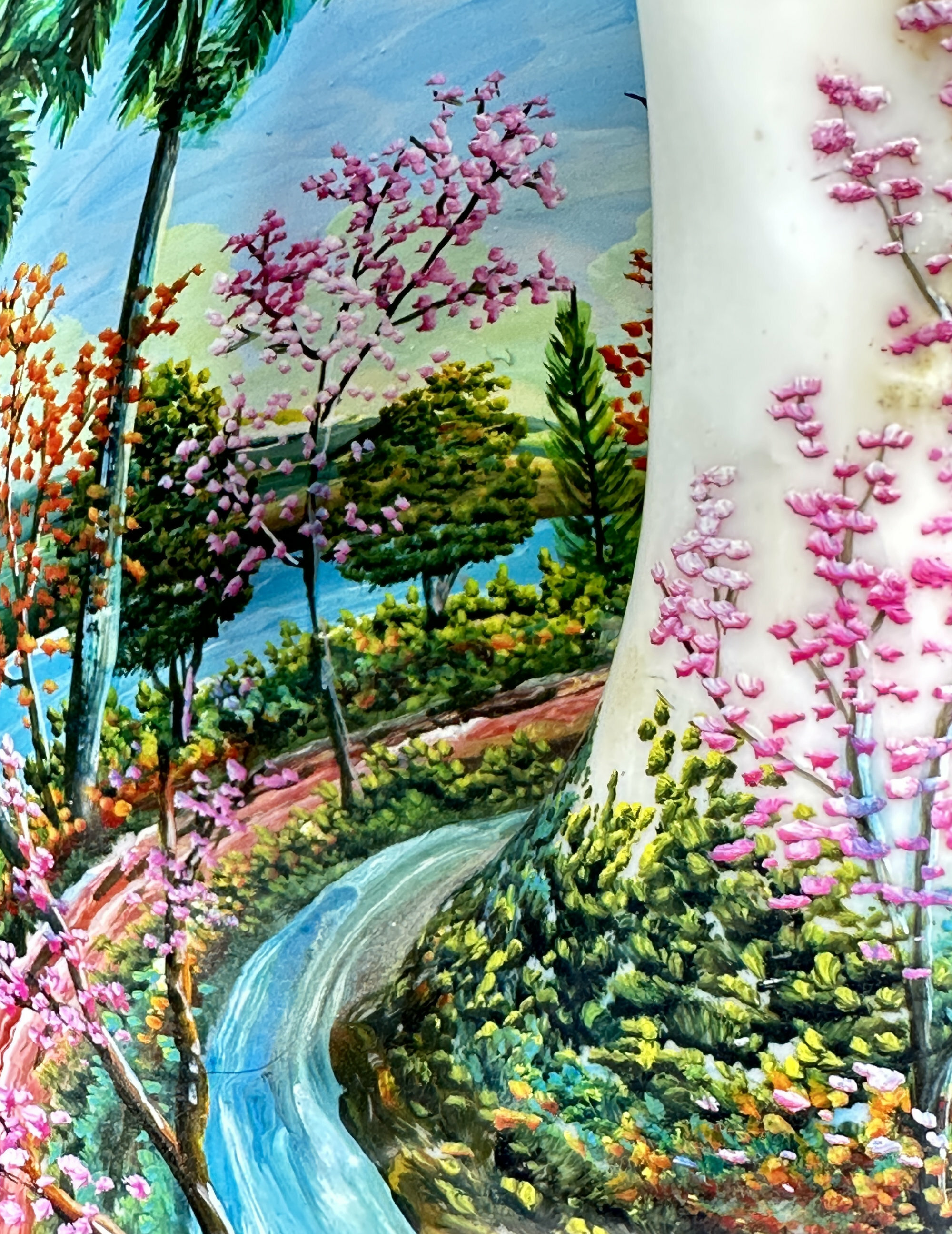 Kitsch Style Conch Shell with painted landscape decoration, C20th