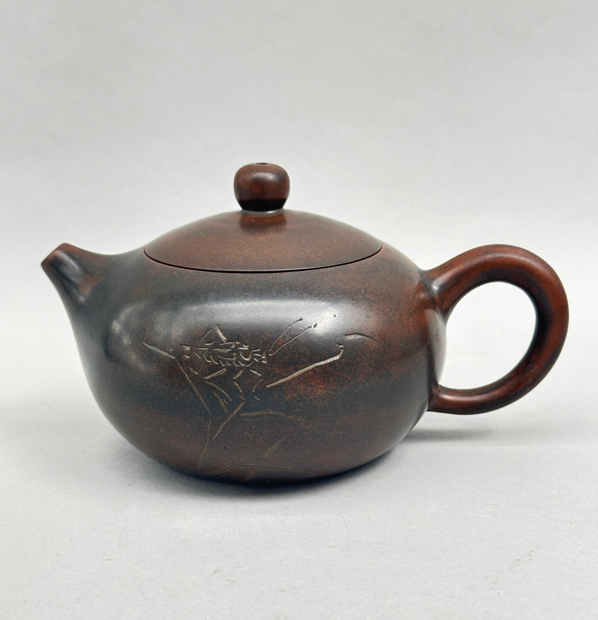 Fine Quality Japanese Yixing style Teapot decorated locust, signed, mid C20th