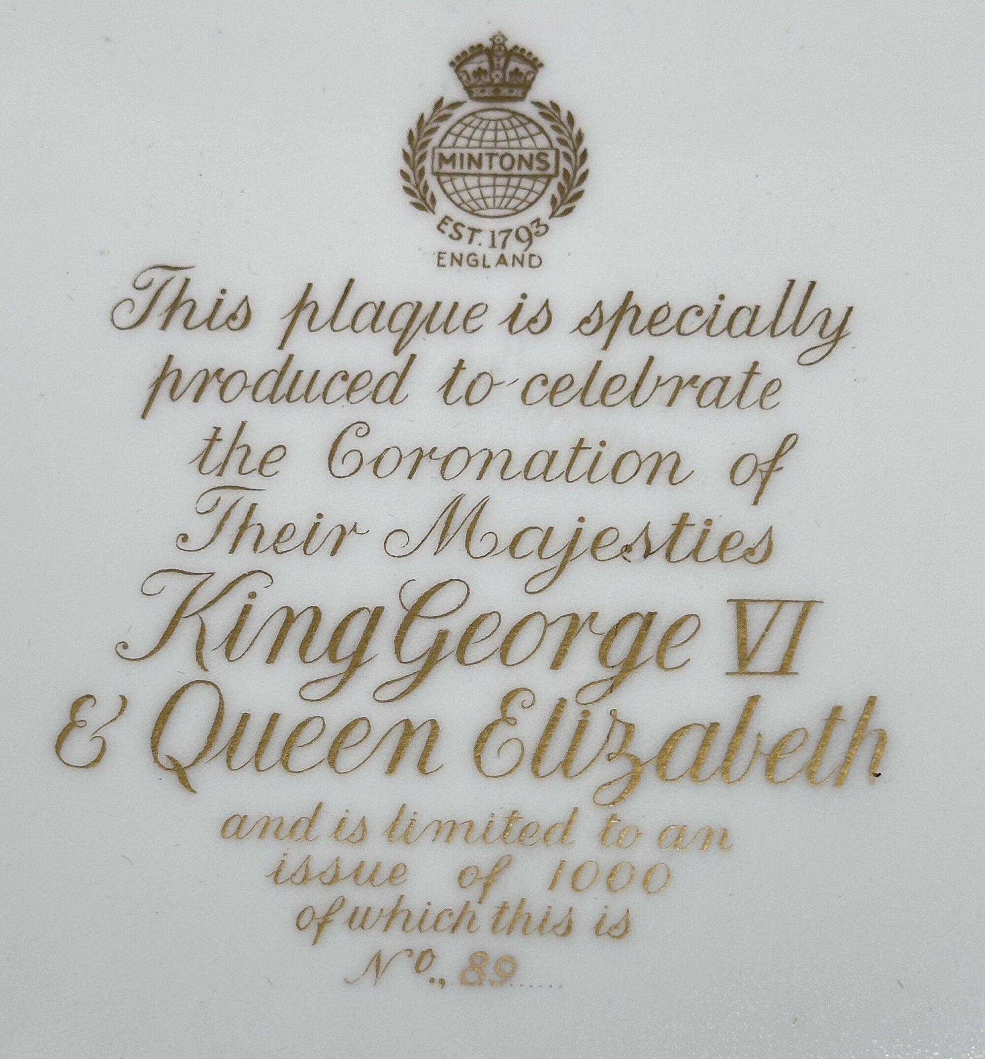 Mintons Coronation Plate, King George VI and Queen Elizabeth 1937, boxed