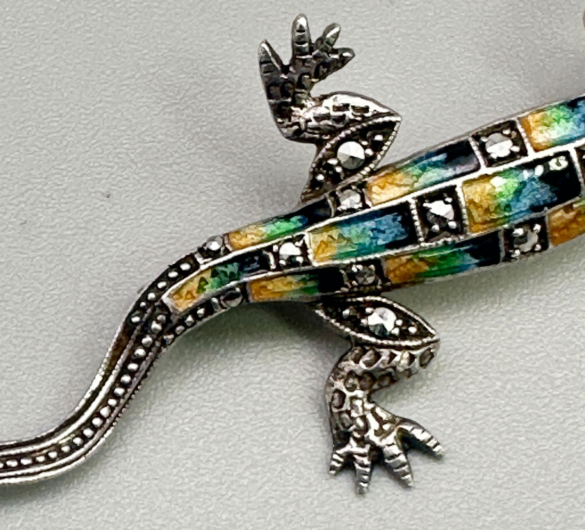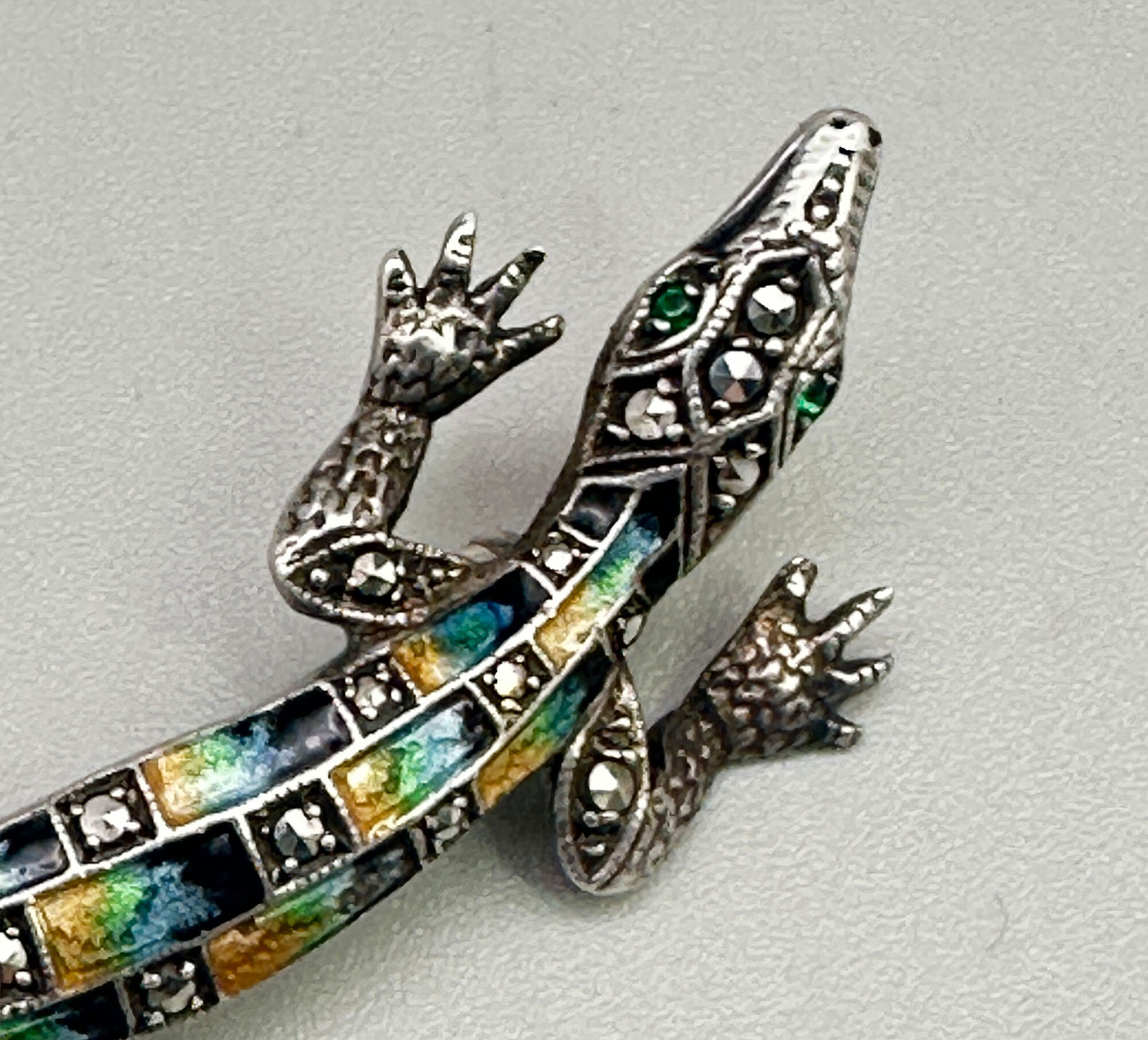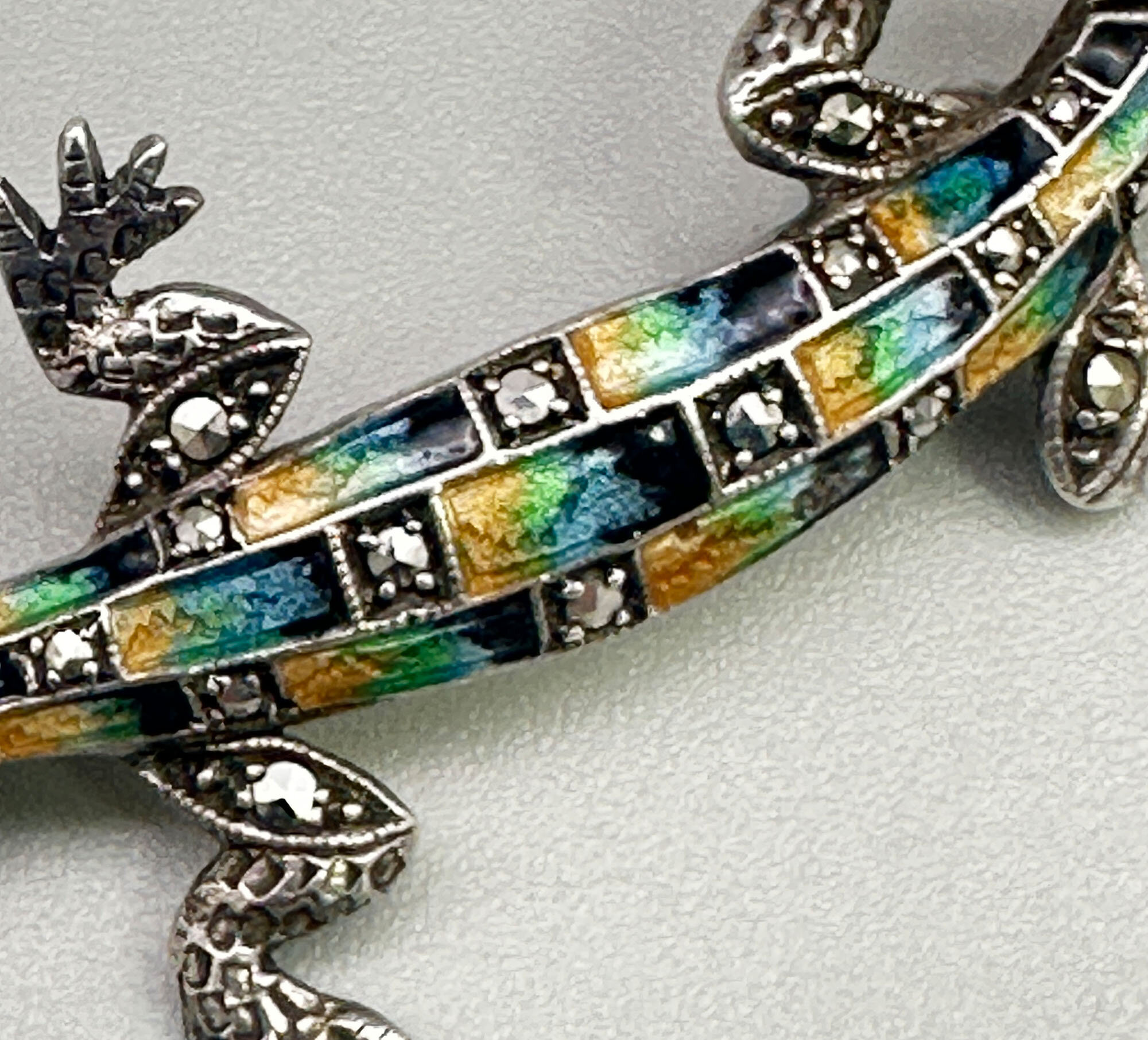 Art Deco lizard brooch with colour enamel and marcasite stones c1930