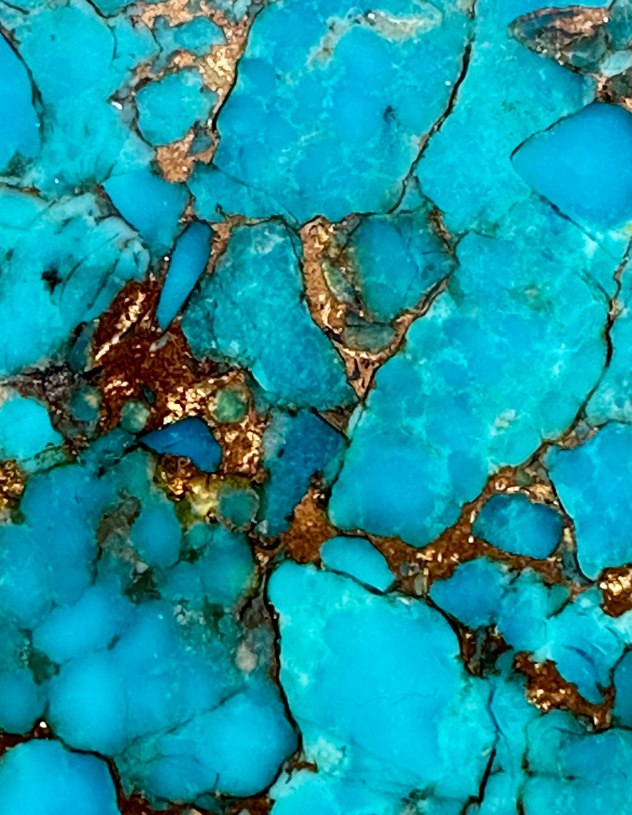Kingman copper matrix turquoise large pendant on chain, modern