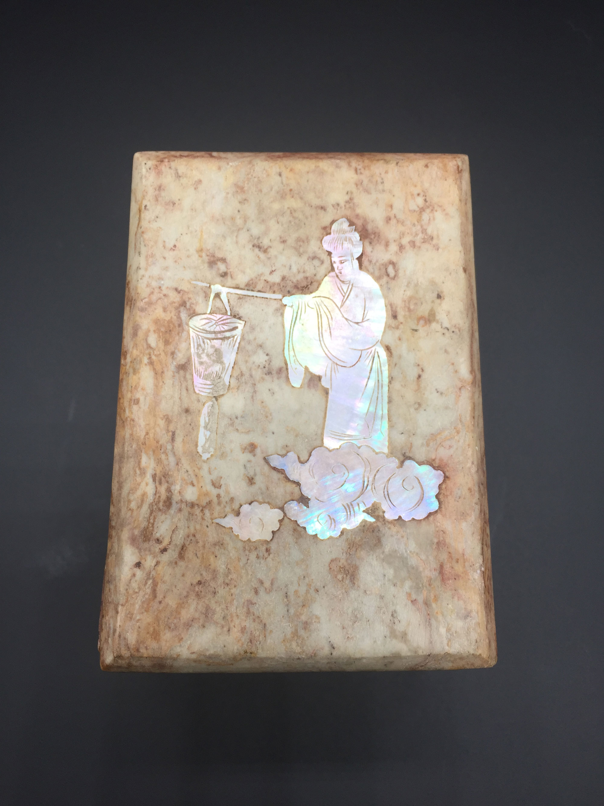 Chinese Soapstone Box and Cover with Mother of Pearl Inlay, C20th