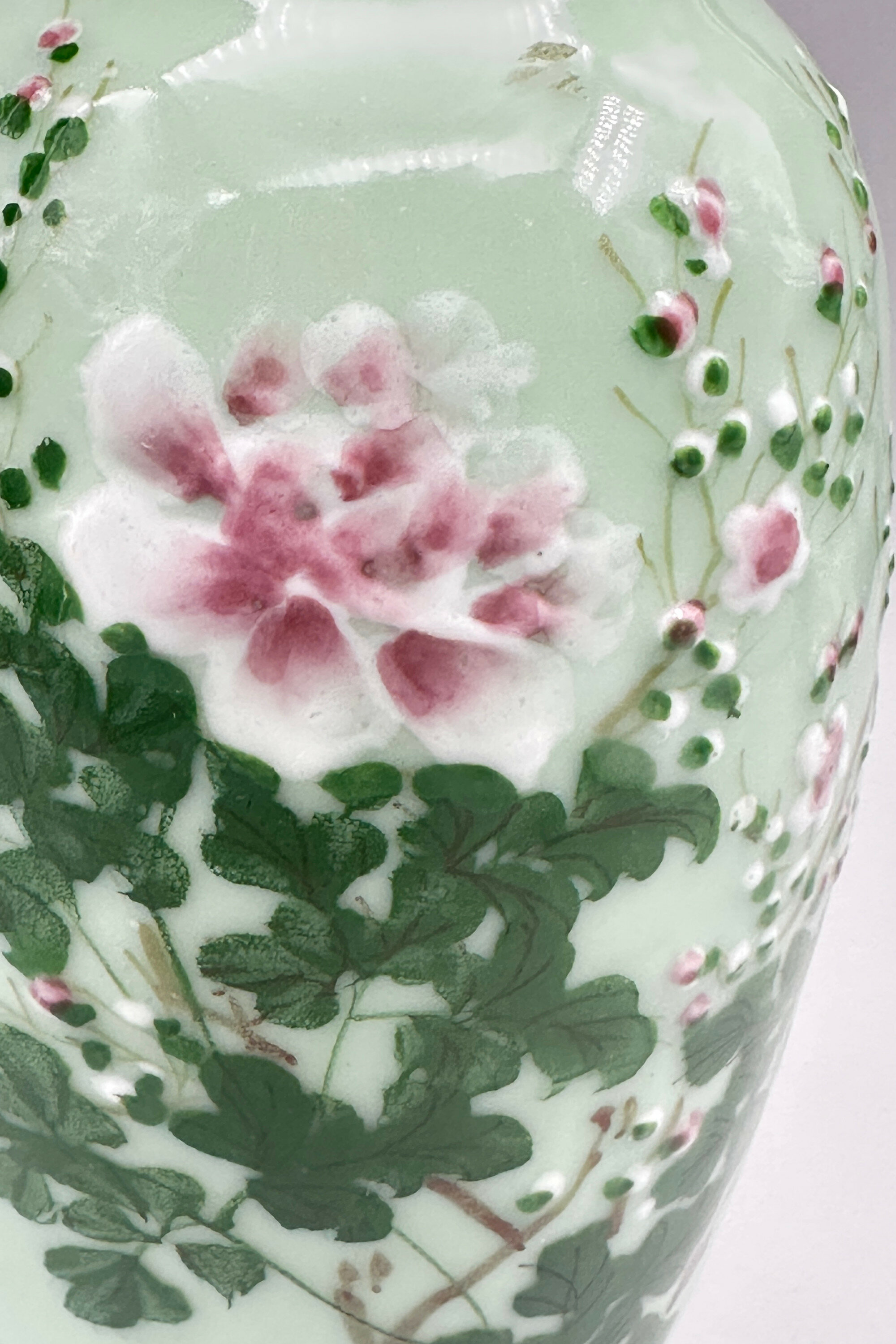 Japanese Celadon glaze vase with enamel decoration, late C19th
