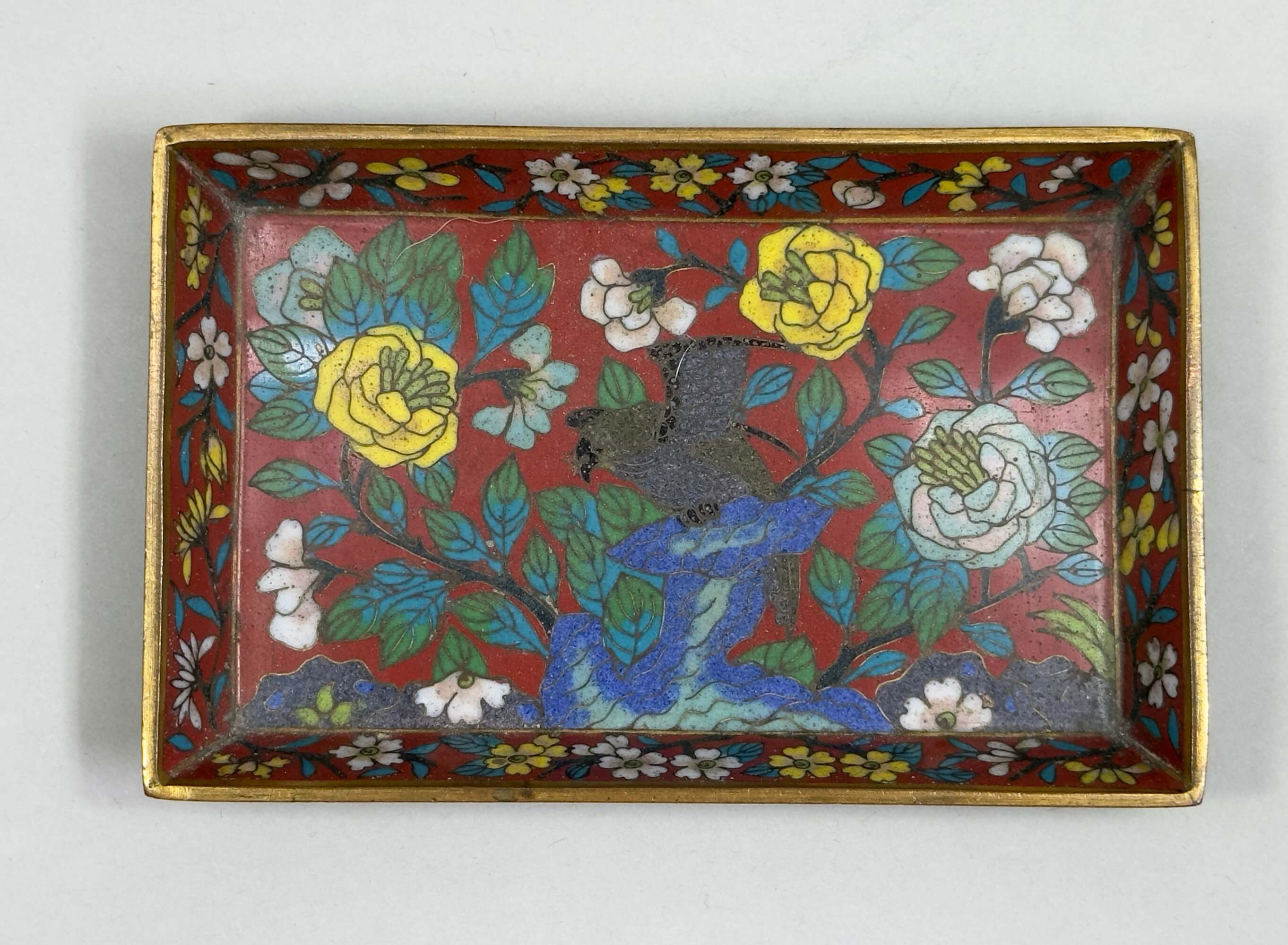 Chinese Cloisonne Small Tray decorated with Flowers and Rocks, 19th Century