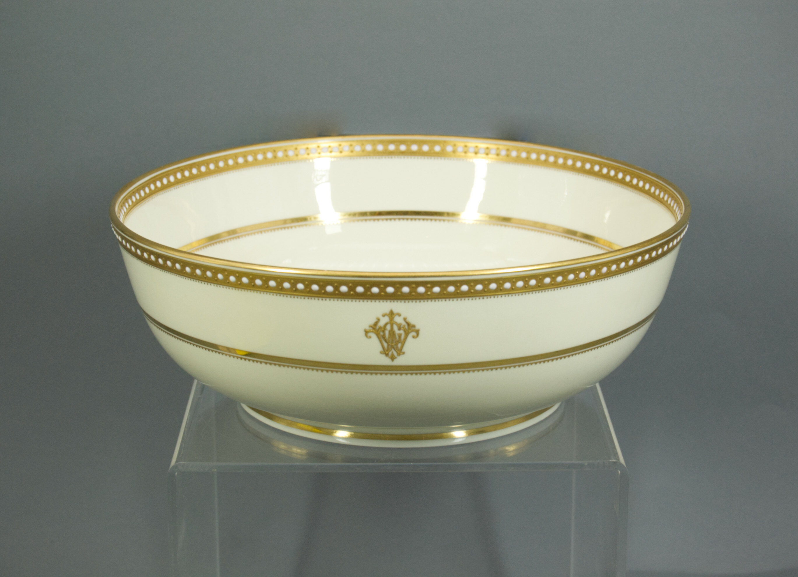 Fine Quality English Copeland Porcelain Bowl with Gilt Monogram and Decoration 20th Century